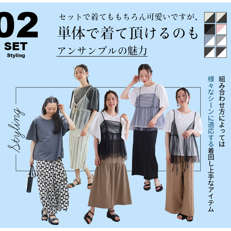 2タイプから選べる!トレンドチュールで着痩せが叶うビスチェアンサンブル
