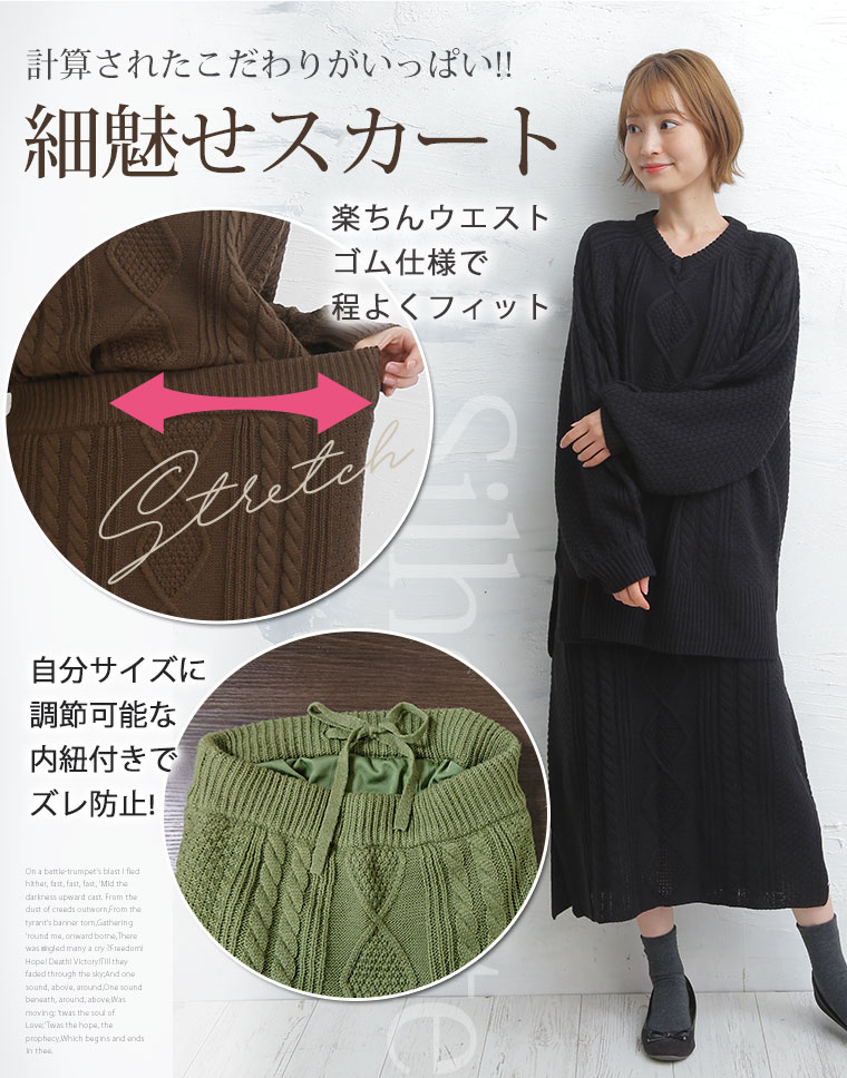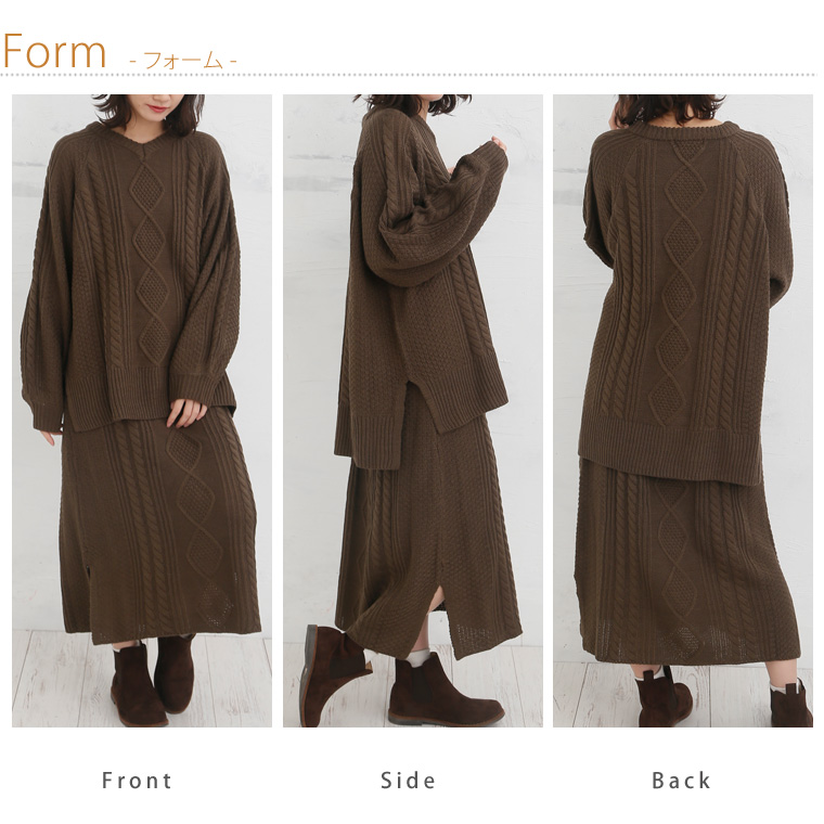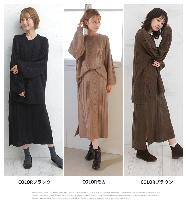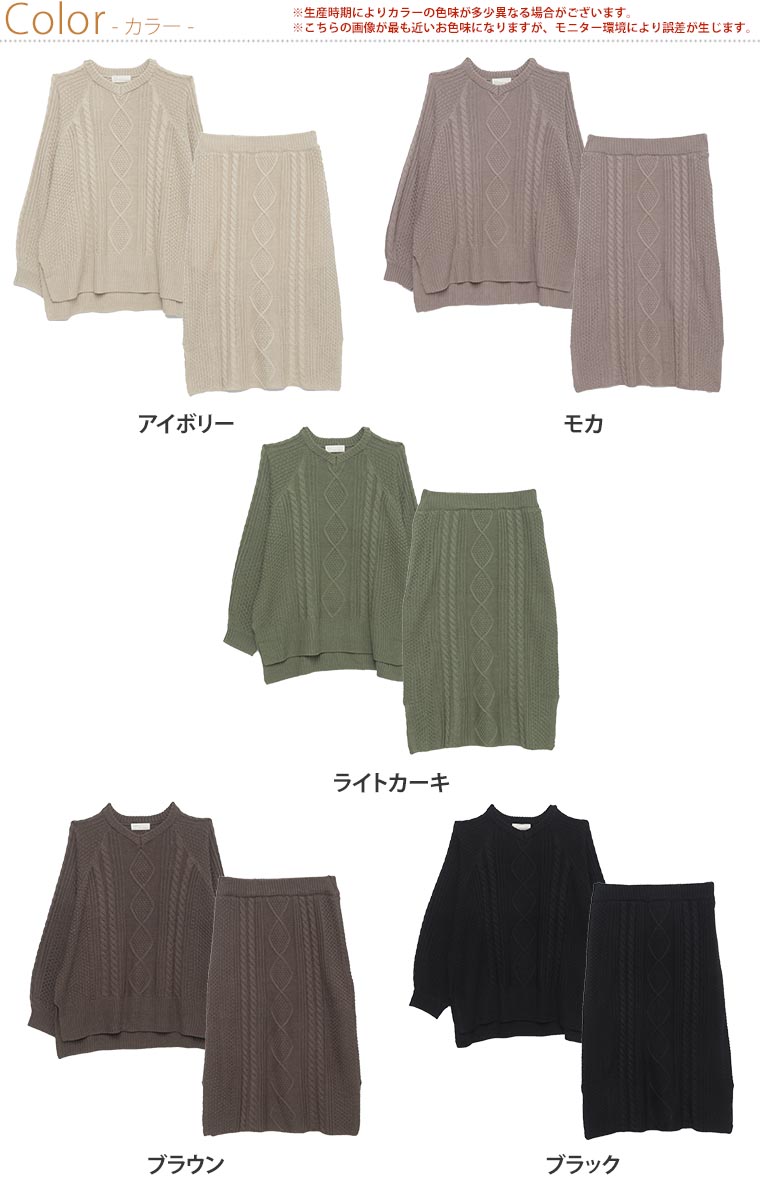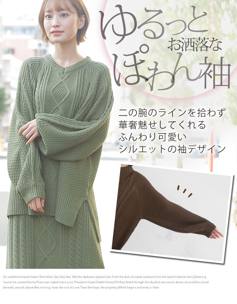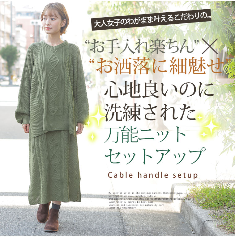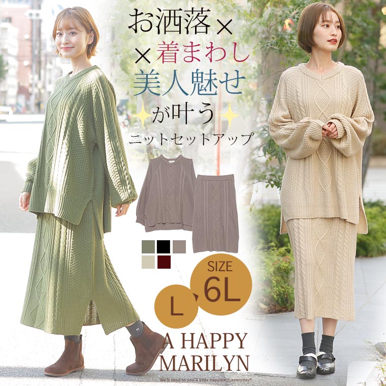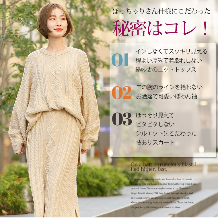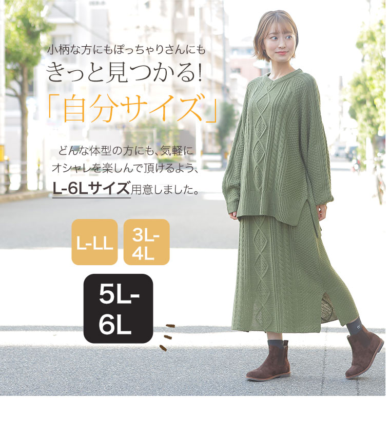 オリジナル 上下セット set LL 3L 4L 5L 6L 冬 冬物 冬服 ぽっちゃり ゆったり ニットアップ かわいい おしゃれ カジュアル ナチュラル アクリル バルキー ケーブル柄 セットアップ