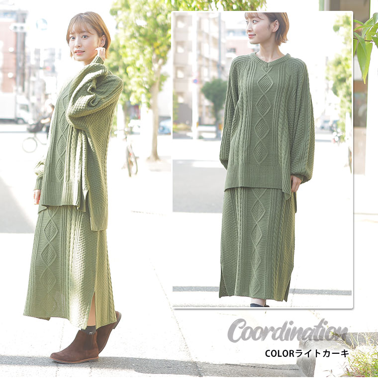 6. 大きいサイズ アクリル バルキー ケーブル柄 セットアップ