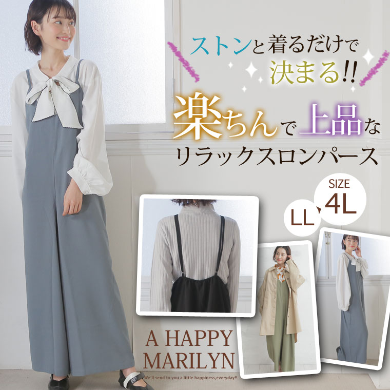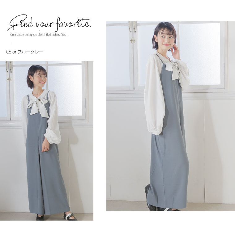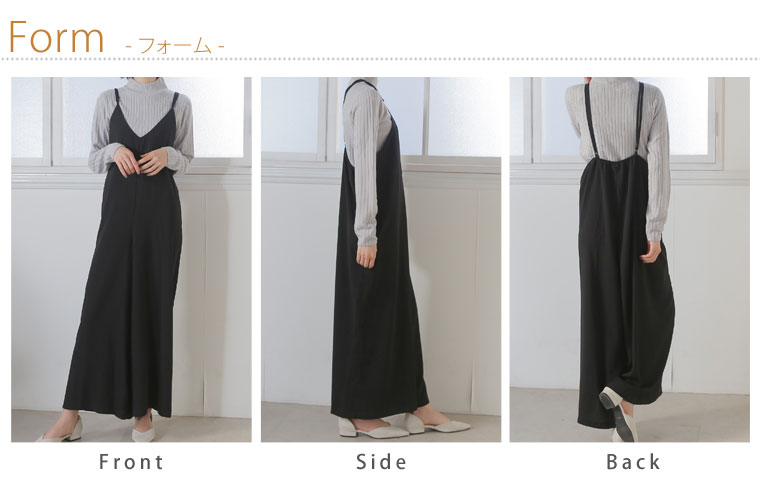自分の好みの長さに調整出来る肩紐とウエストゴムでゆったり楽ちん♪ストンとしたシルエットだから細魅せ効果も◎