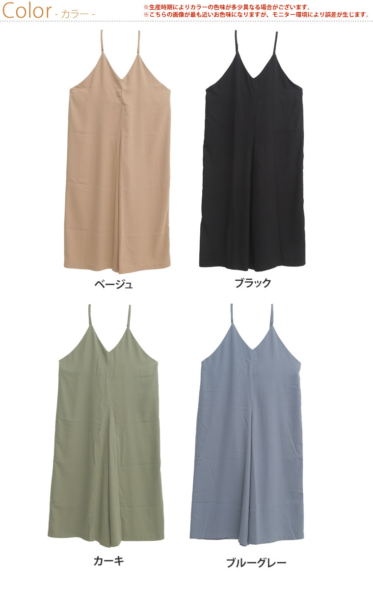 上品素材のゆったり楽ちんワイドシルエット無地ジョーゼットキャミロンパース