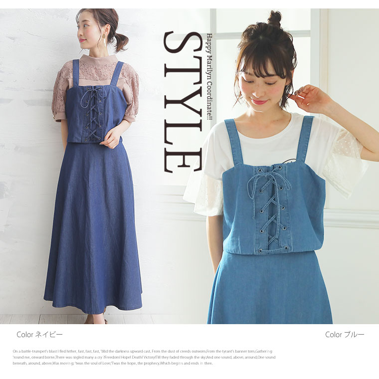 レースアップデザイン デニム キャミ セットアップ