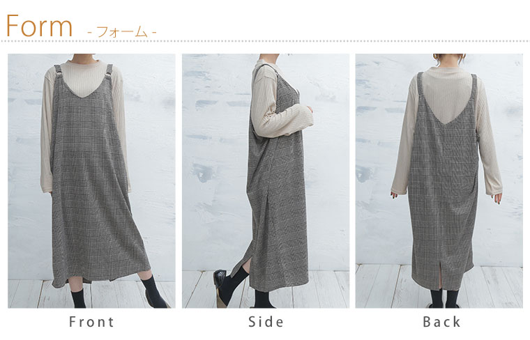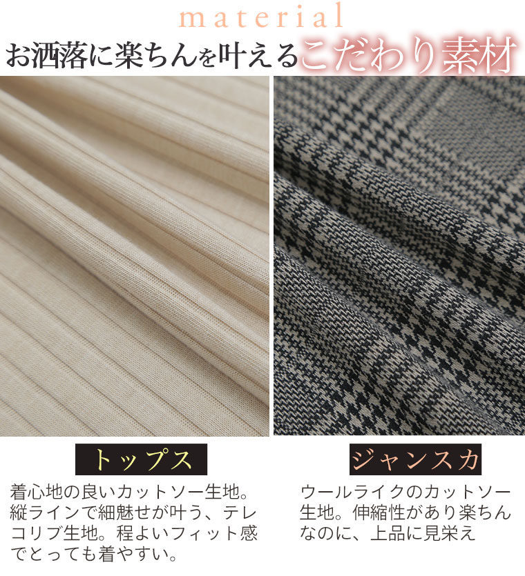 4. 大きいサイズ ジャガード ジャンスカ × リブ トップス セットアップ 無地 柄 チェック