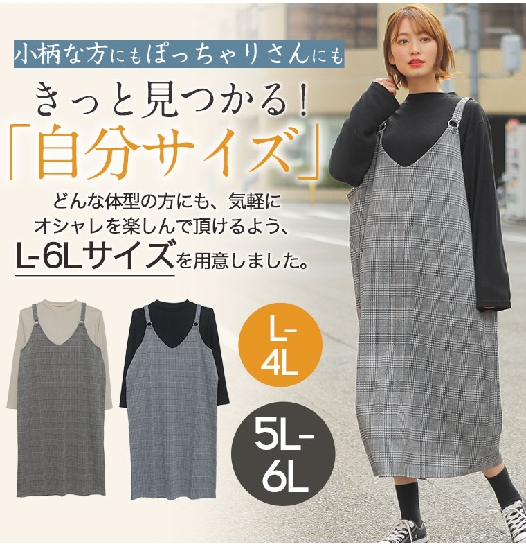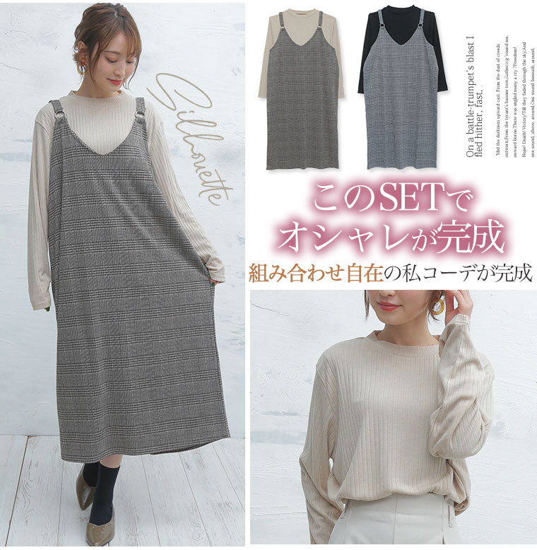 5. 大きいサイズ ジャガード ジャンスカ × リブ トップス セットアップ 無地 柄 チェック