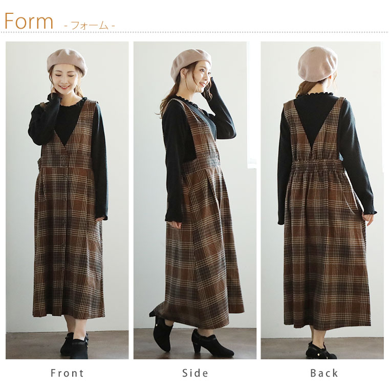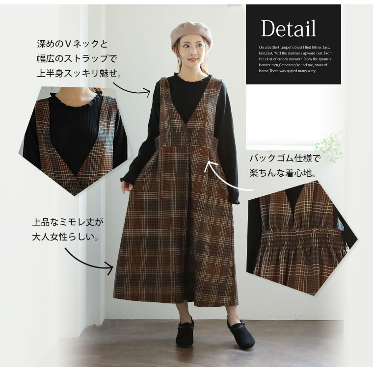 チェック柄でお洒落にコーディネートできるジャンスカ