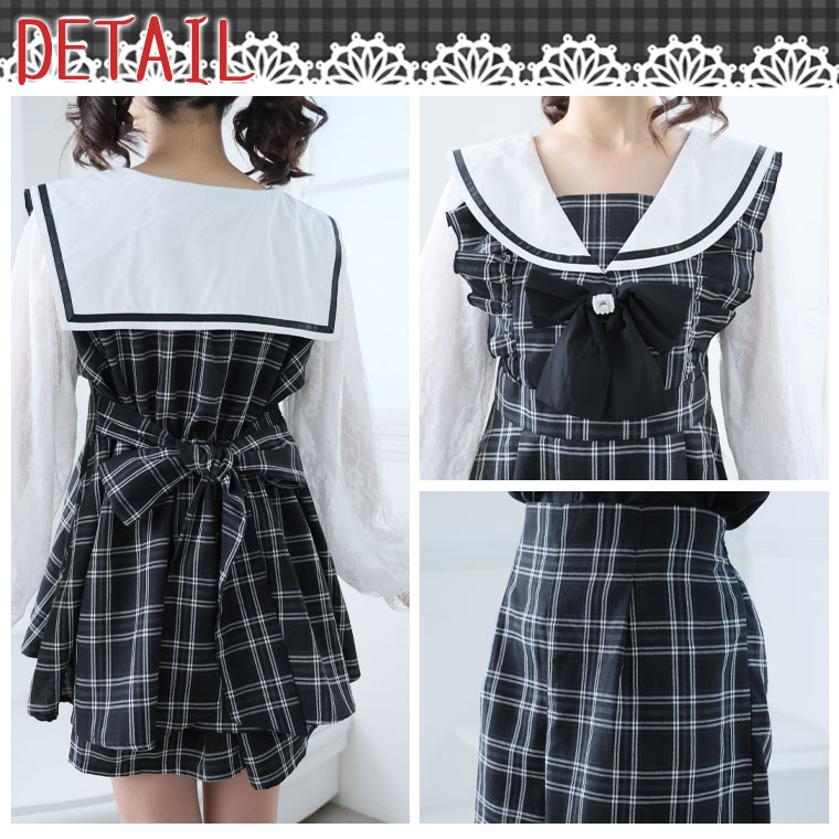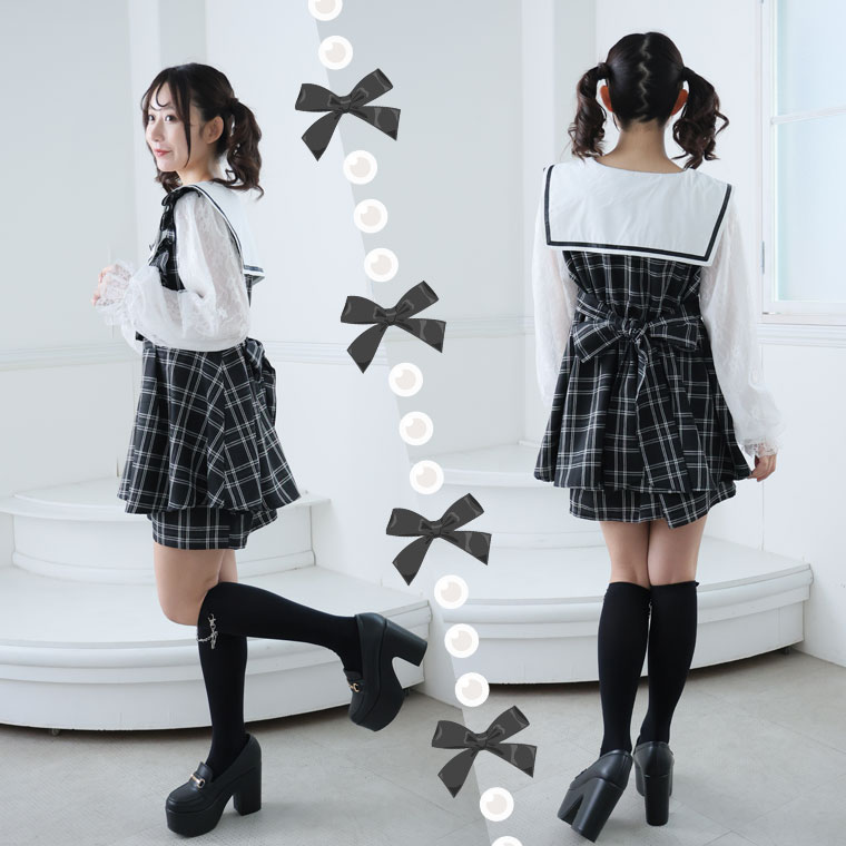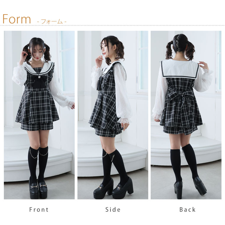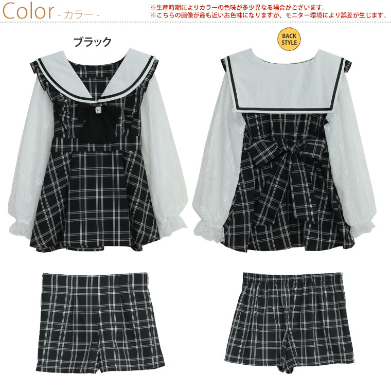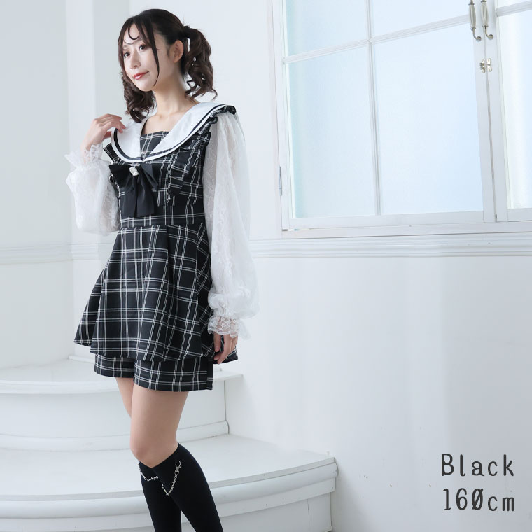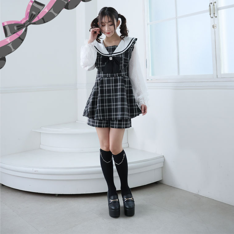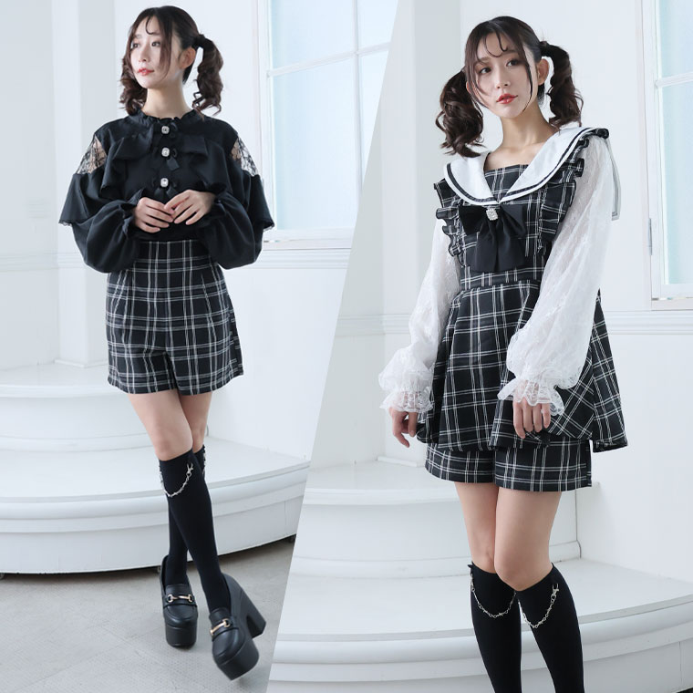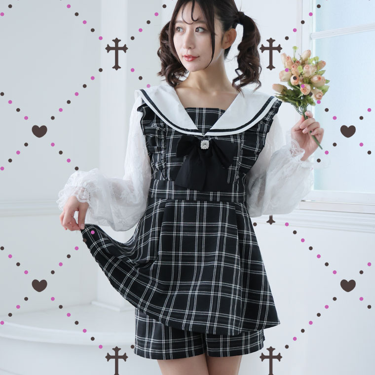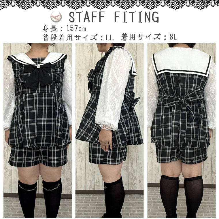 ワンピ パンツ ボトムス LL 3L 4L 秋 秋物 秋服 冬 冬物 冬服 ぽっちゃり ゆったり ゴスロリ ロリータ コスプレ ハロウィン 地雷系 チェック ワンピース × ショートパンツ セットアップ