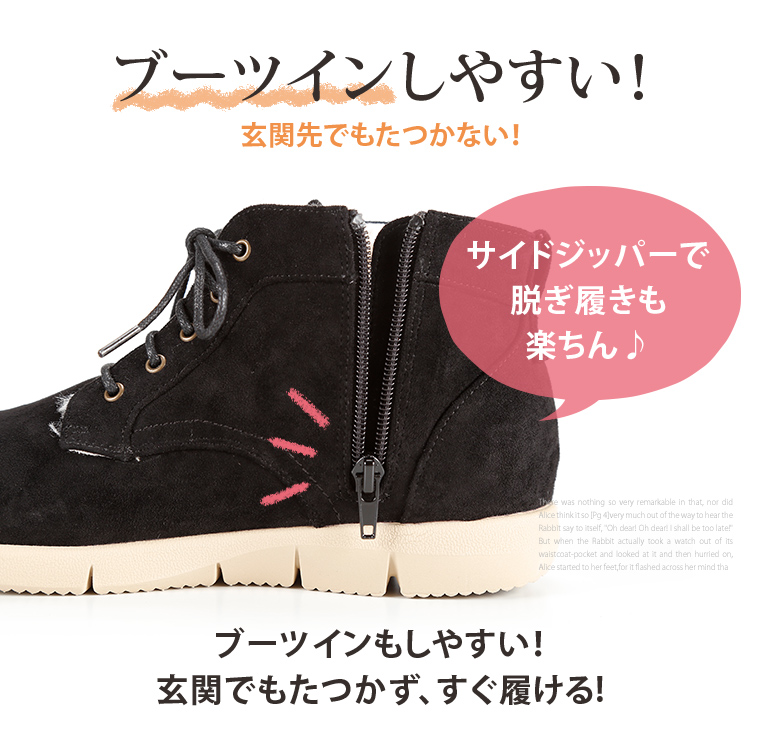 サイドファスナーで着脱も楽ちん♪忙しい朝ももたつかないブーツ出来ました