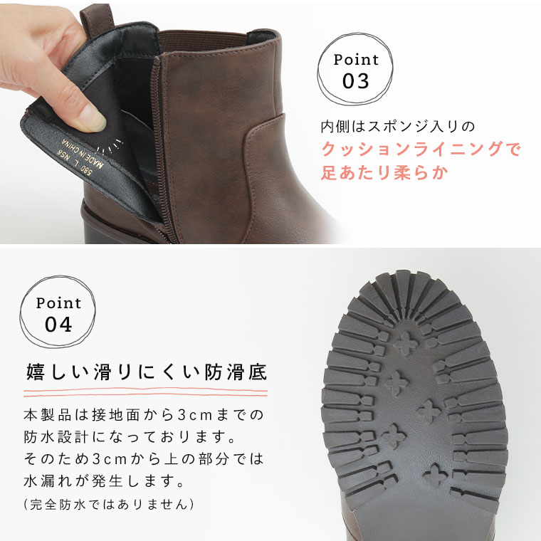 3cm防水仕様&サイドゴアデザインで脱ぎ穿きも楽ちん