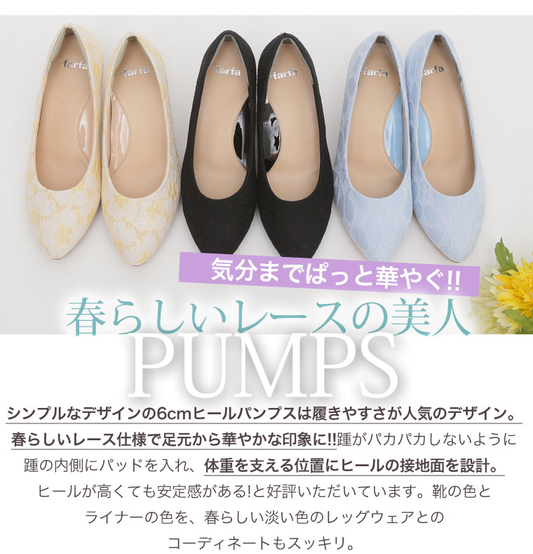 華やかなレースデザインで足元から女性らしく。定番カラーからアクセントまでSelect3色をご用意!!