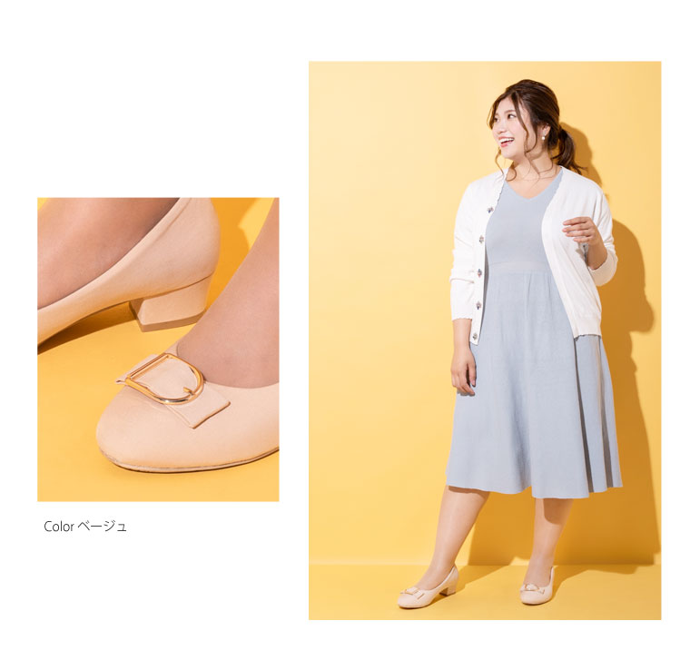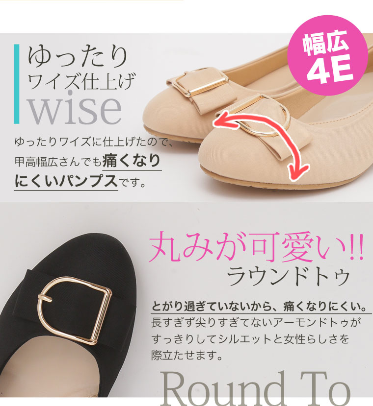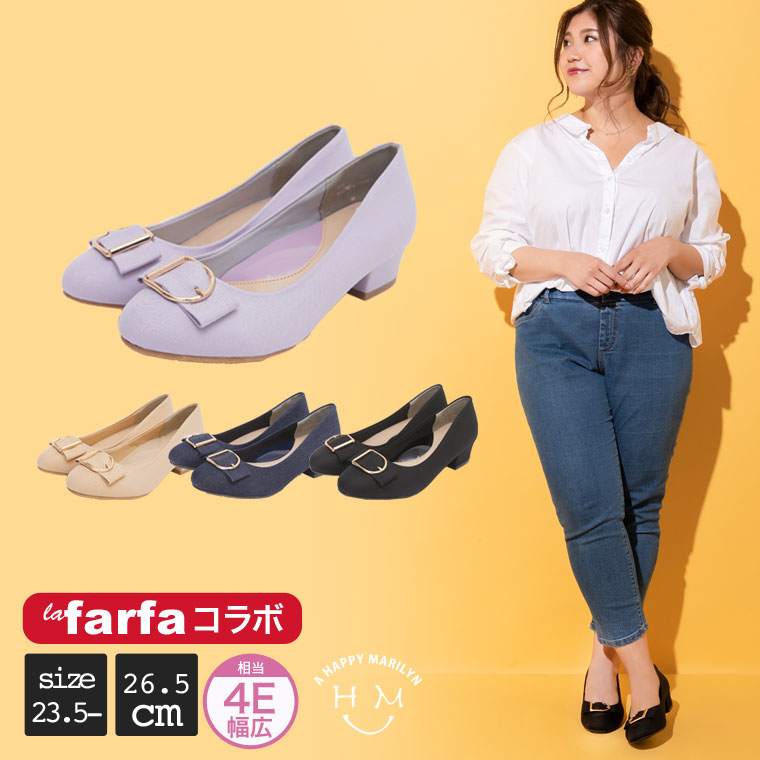 4E幅広サイズで痛くない!!ラ・ファーファコラボバックル付きパンプス
