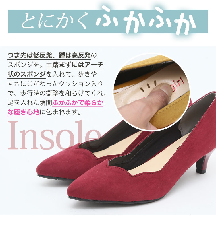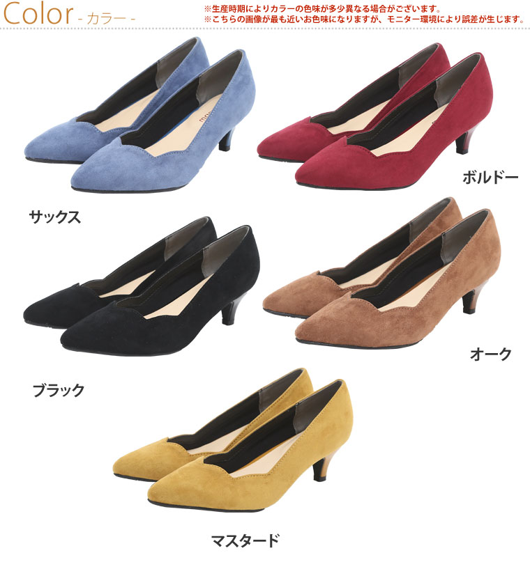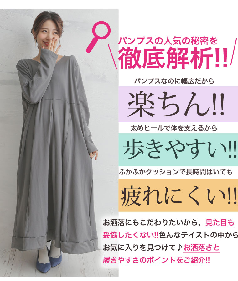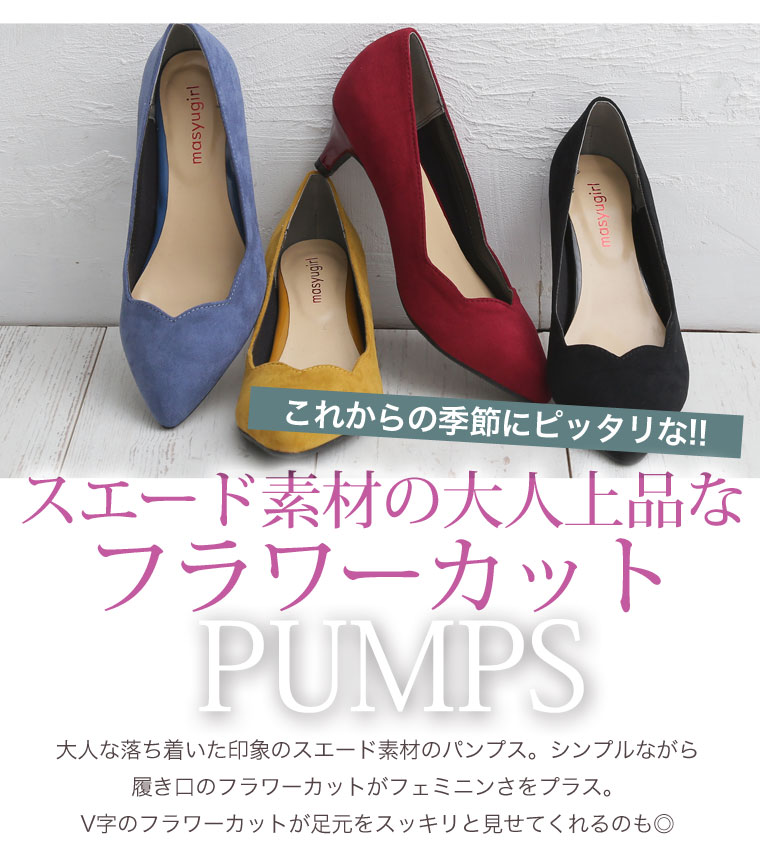 足元を女性らしく彩るフラワーカットミドルヒールパンプス