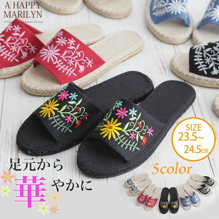 刺繍とジュートソールでコーデを夏らしく。エスパフラワー刺繍サンダル