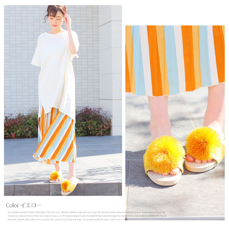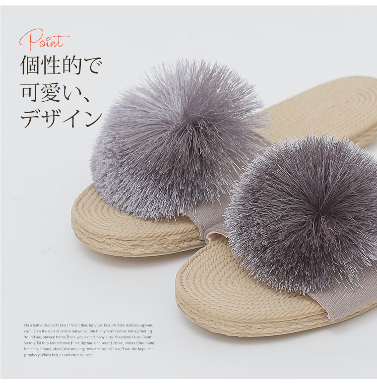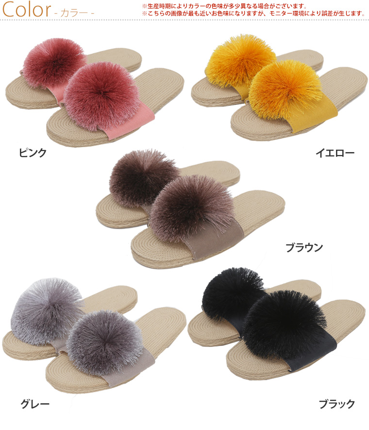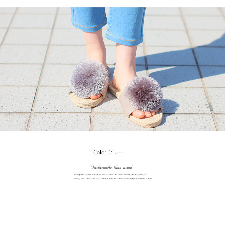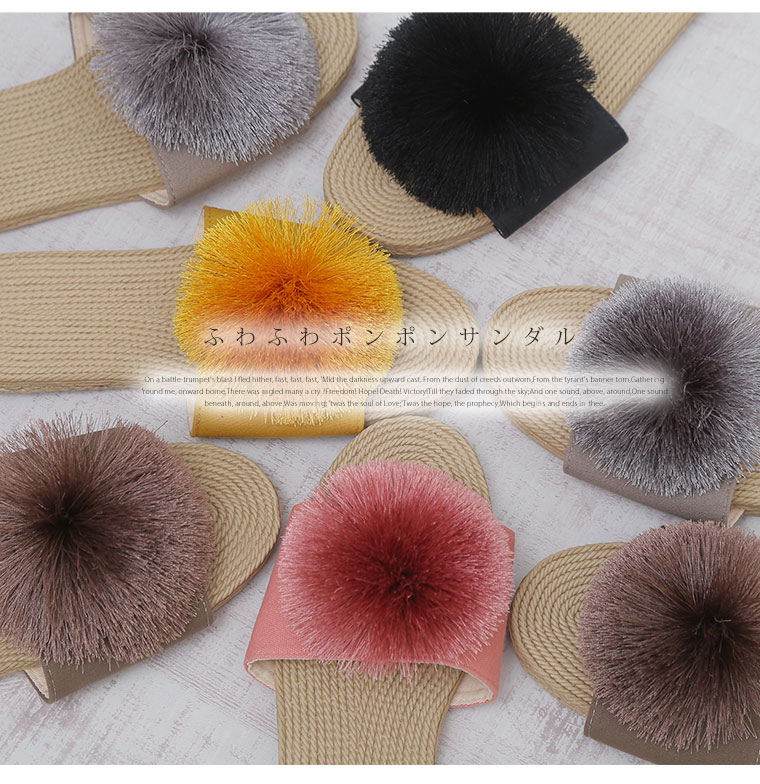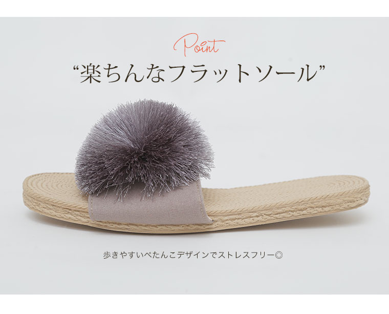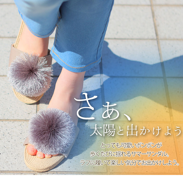とっても可愛いポンポンが歩くたびに揺れるサマーサンダル。ラフに履いて楽しい気分でお出かけしよう