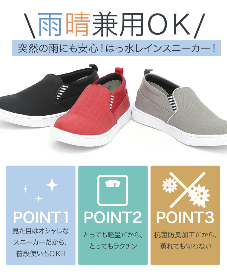 撥水加工で雨の日も安心♪抗菌加工のレインスニーカー