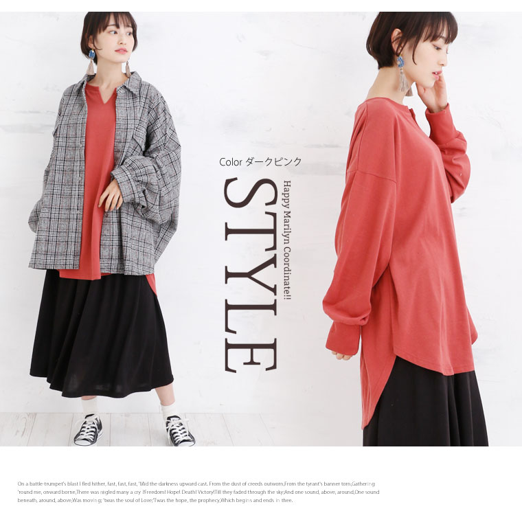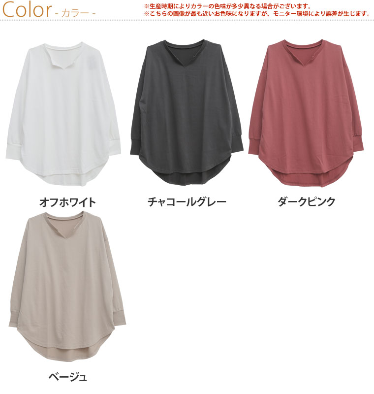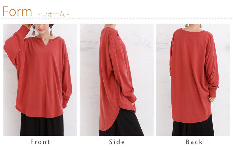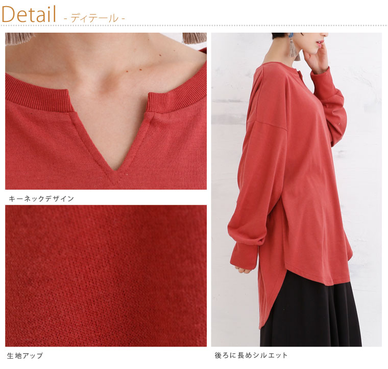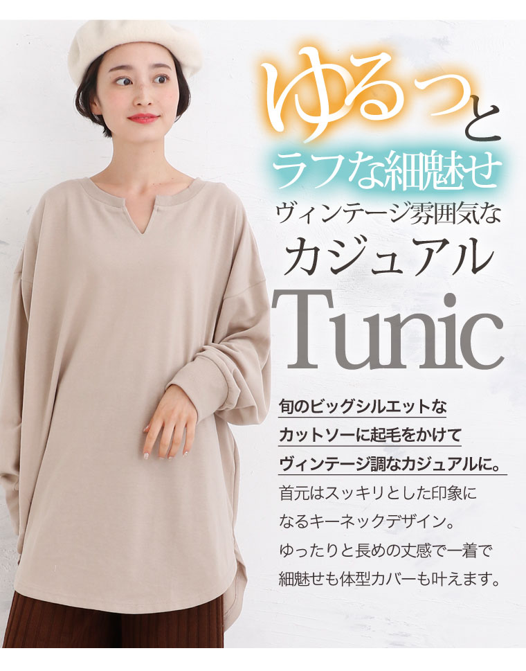 6. 大きいサイズ 表起毛 天竺 キーネック 長袖 チュニック