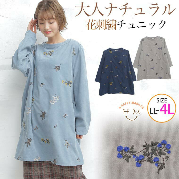 6. 大きいサイズ 大人 ナチュラル 草花 刺しゅう コーデュロイ チュニック | 大きいサイズの通販ならハッピーマリリン