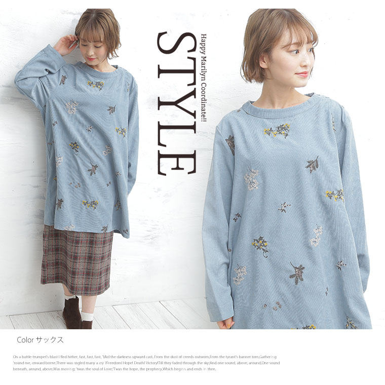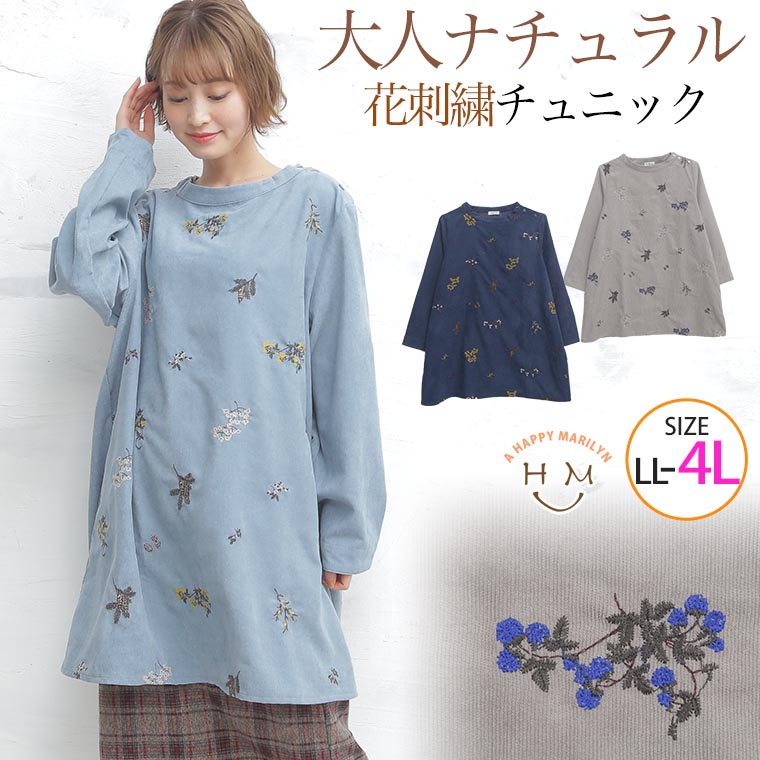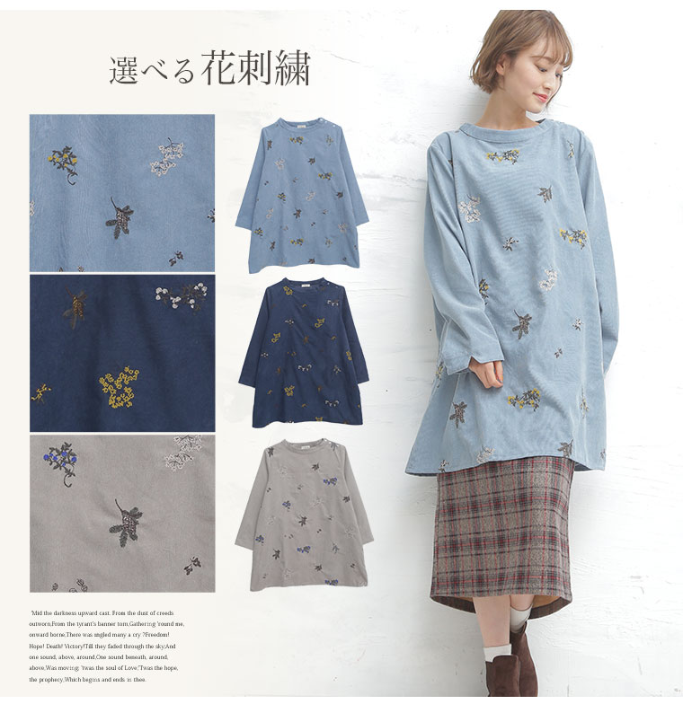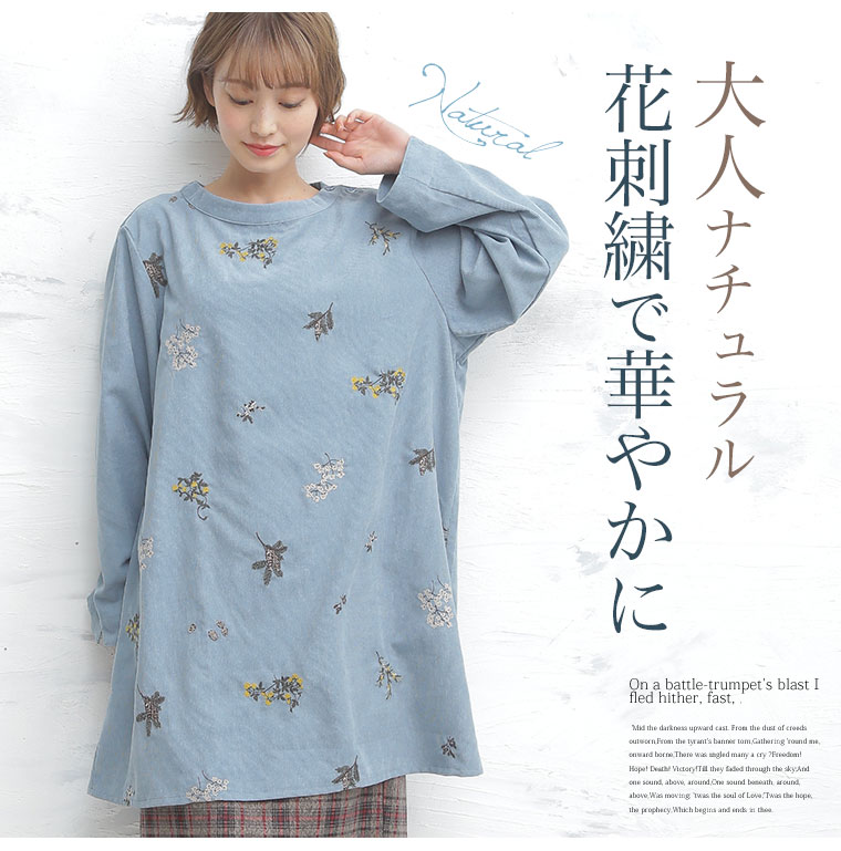 大人ナチュラル花刺繍チュニック