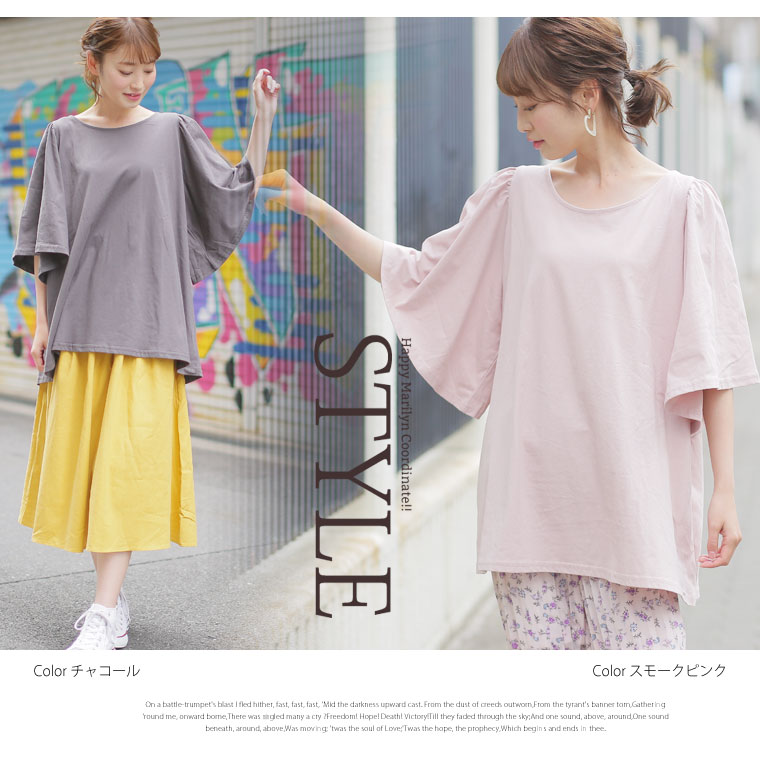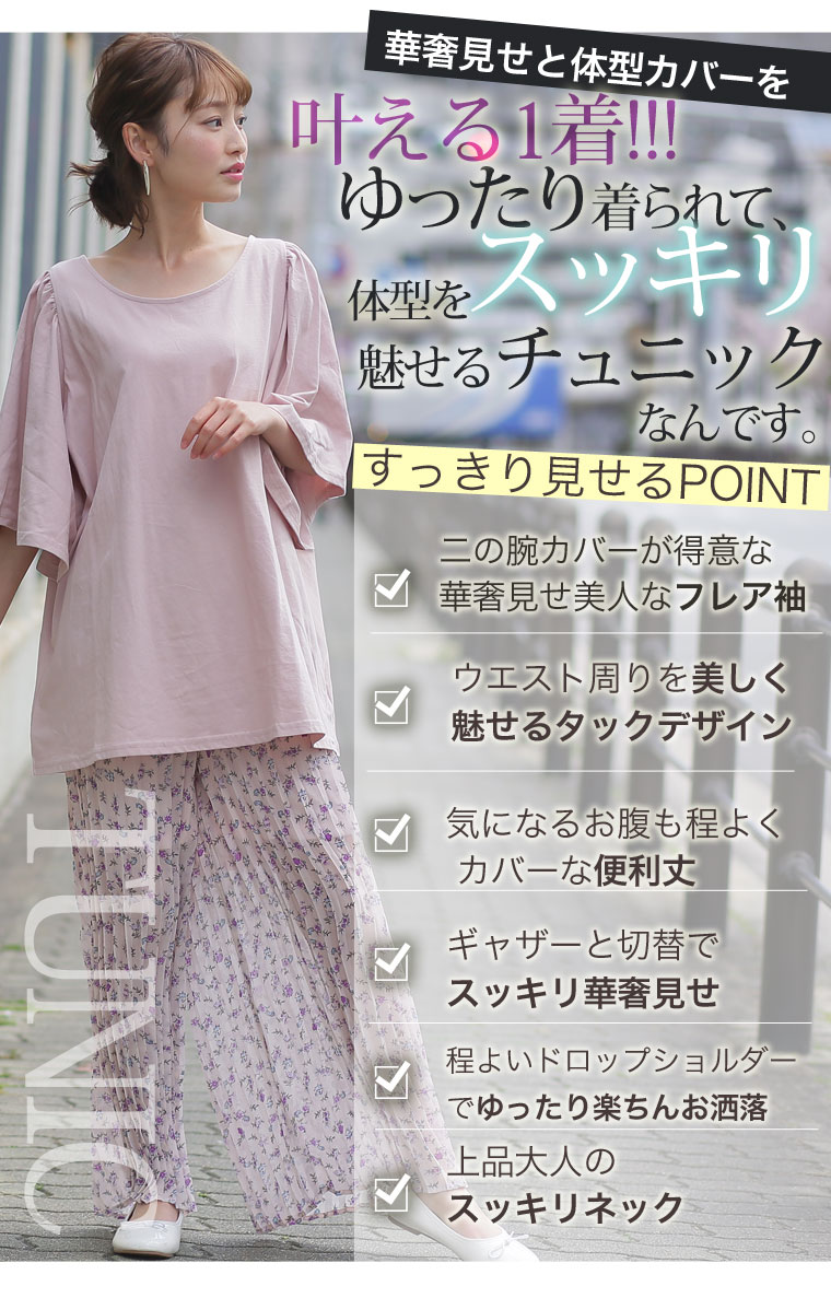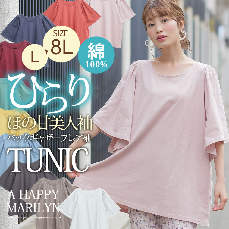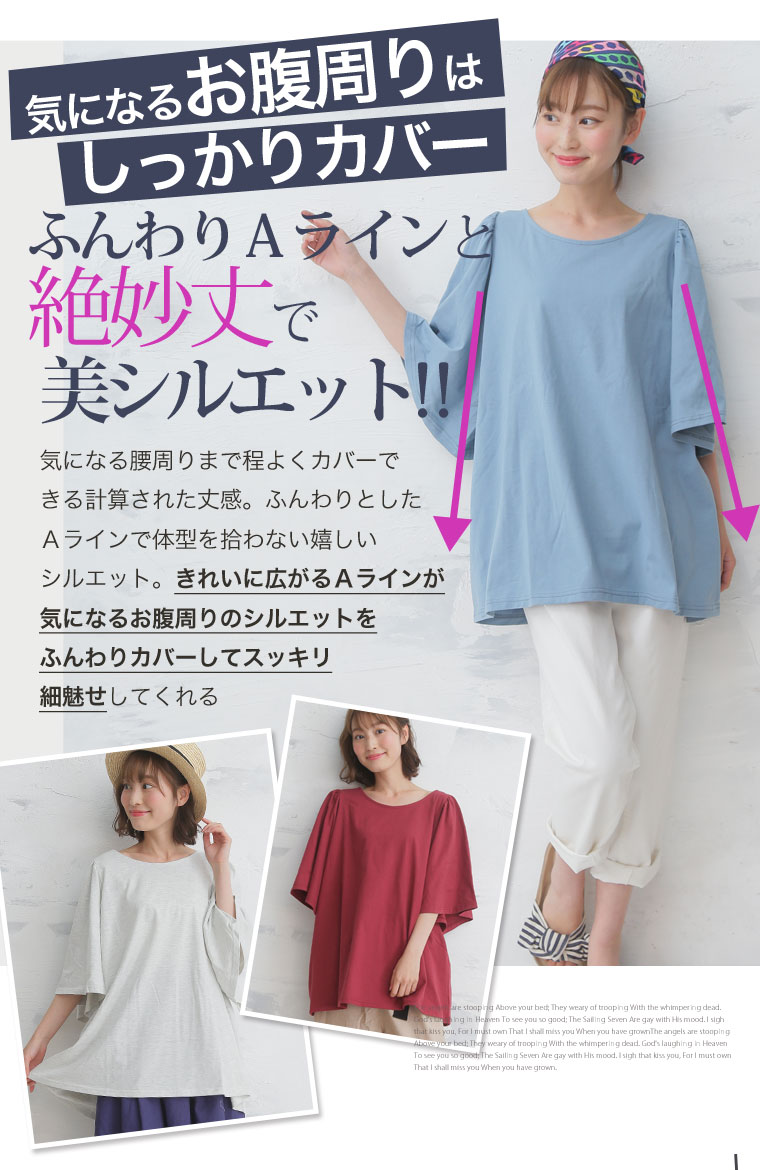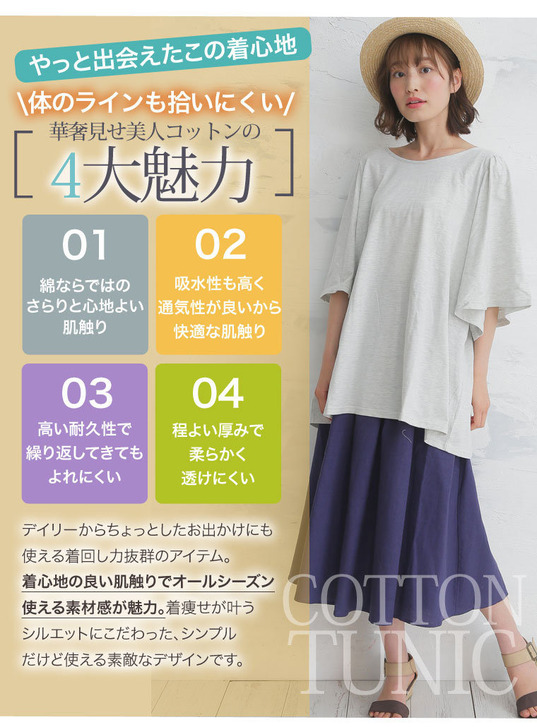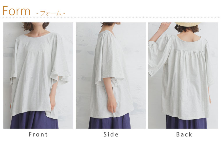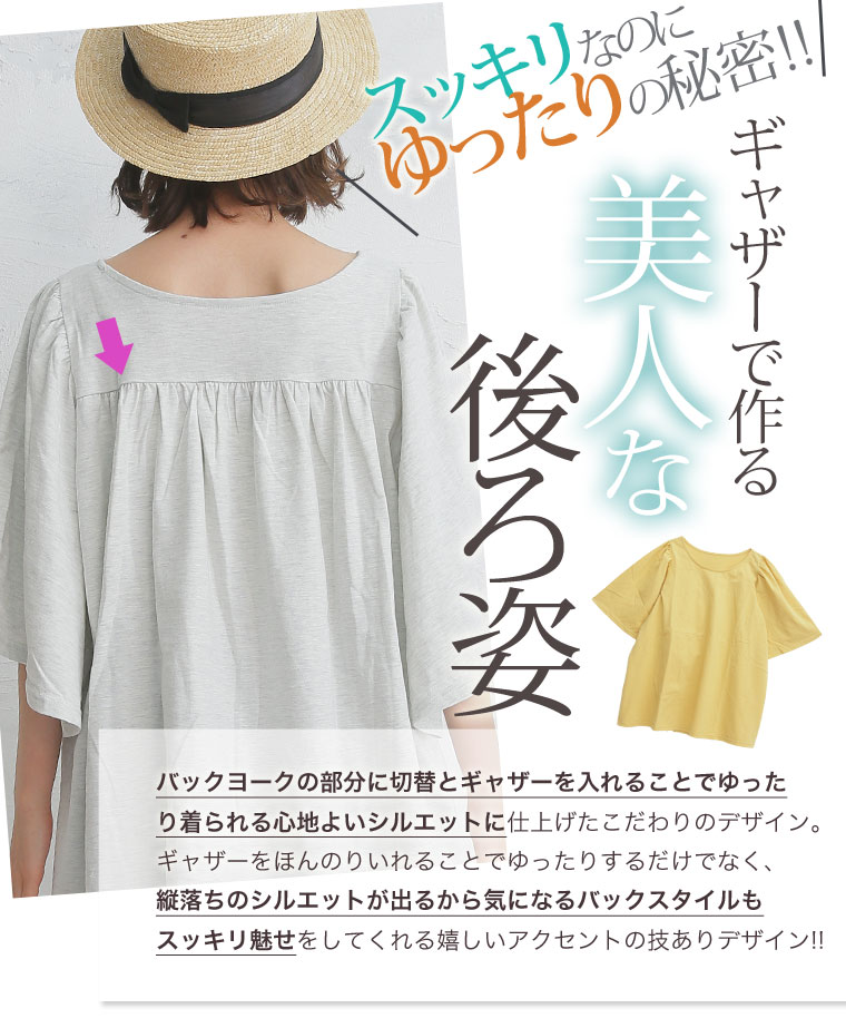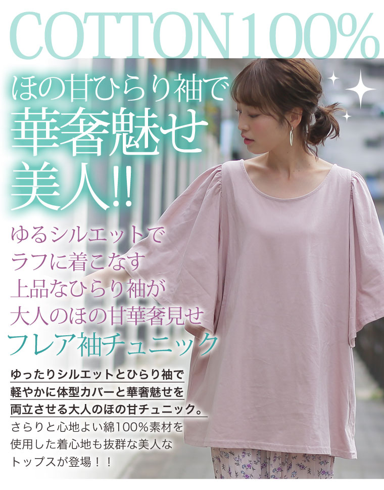 綿100%のナチュラル生地が魅力♪バックギャザーフレア袖チュニック