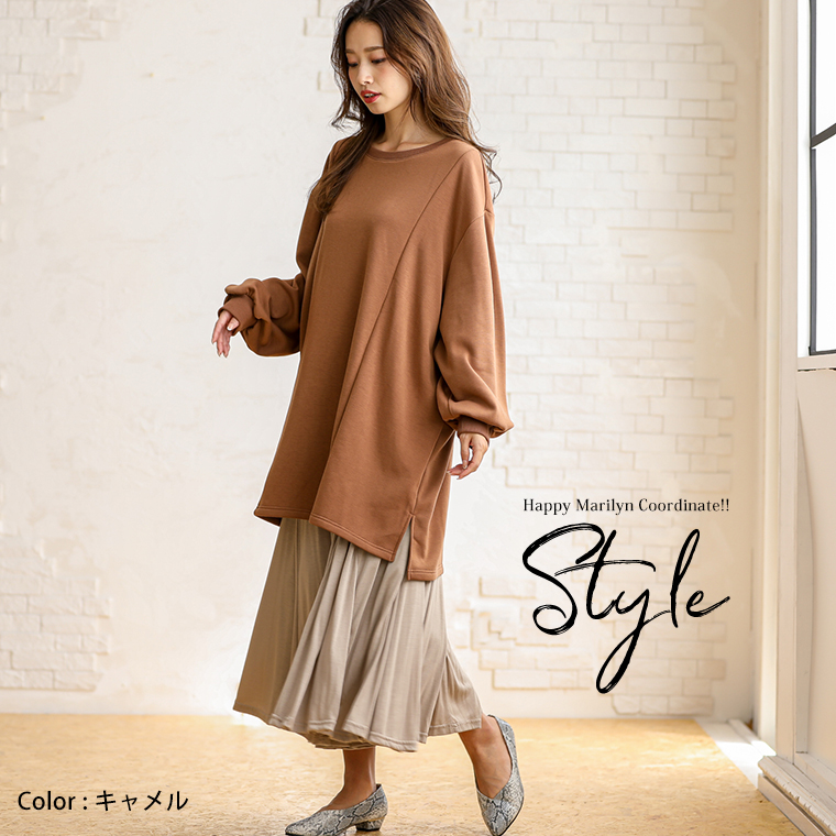 コーデ商品…(モカベージュ)スカート(グレイッシュパープル)パンツ