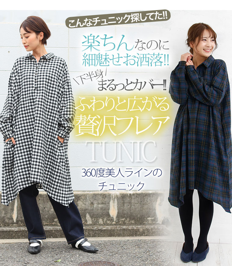 下半身をまるっとカバー。ふわりと広がる贅沢フレアチュニック。