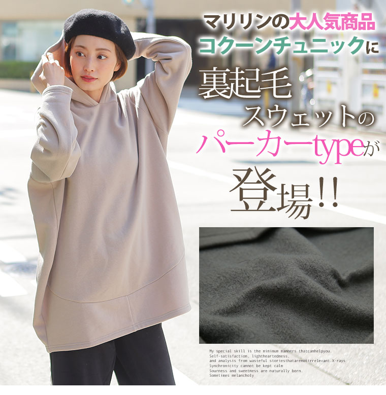 マリリンの大人気アイテムのコクーンチュニックに裏起毛パーカー登場!