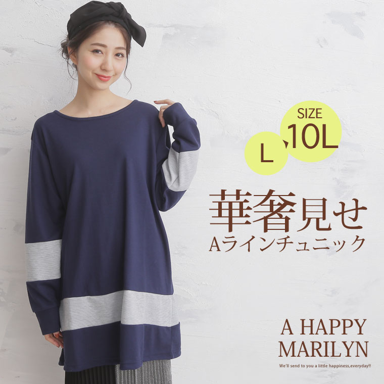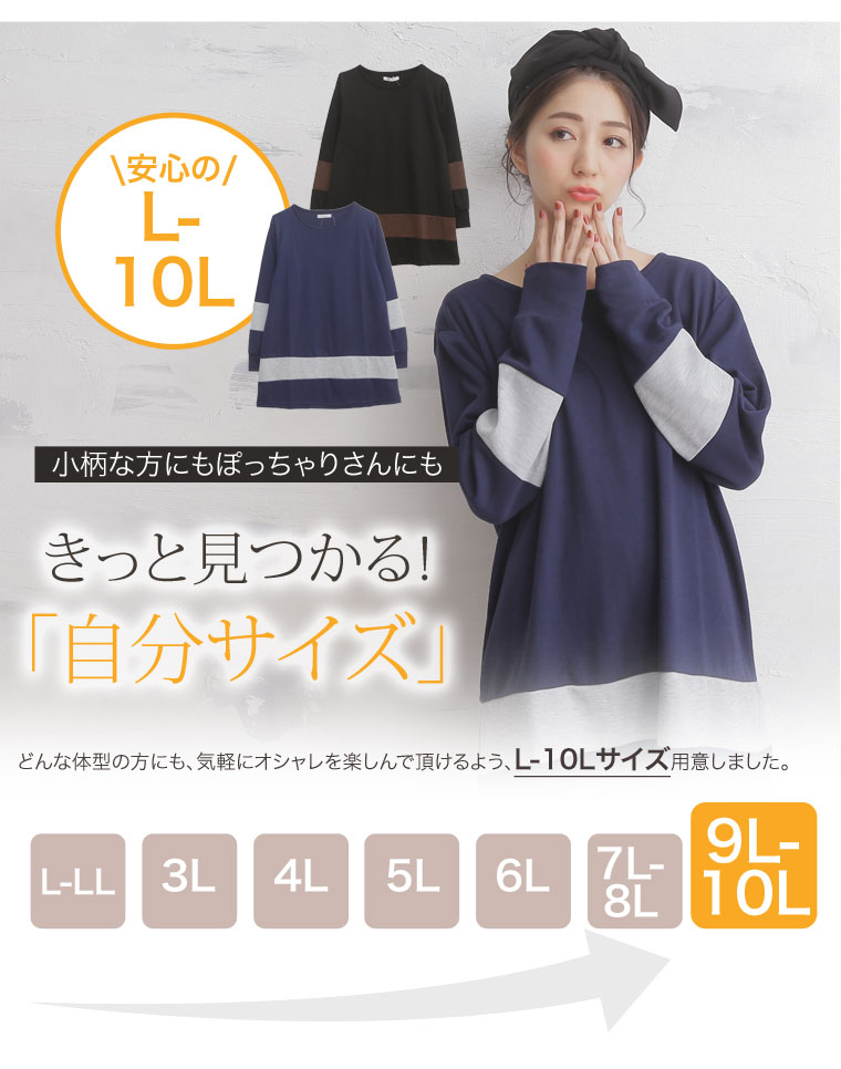 トップス LL 3L 4L 5L 6L 7L 8L 9L 10L 春 春物 春服 ぽっちゃり ゆったり かわいい おしゃれ カジュアル 可愛い 大人 ビッグサイズ 体型カバー 配色切替 長袖 Aライン チュニック