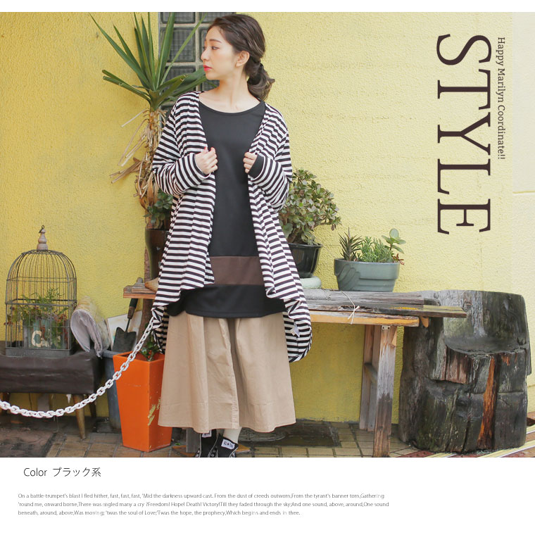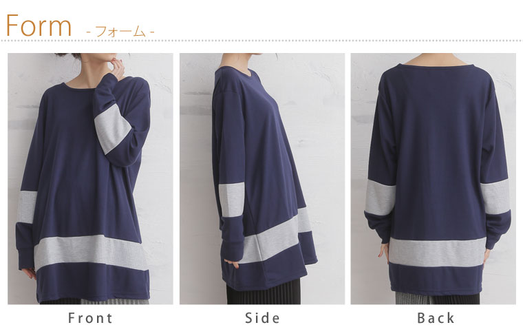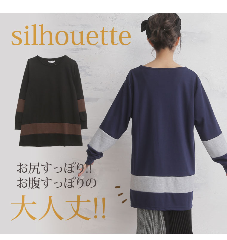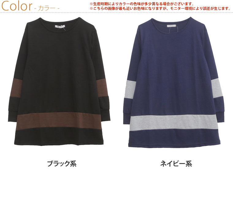 3. 大きいサイズ 配色切替 長袖 Aライン チュニック