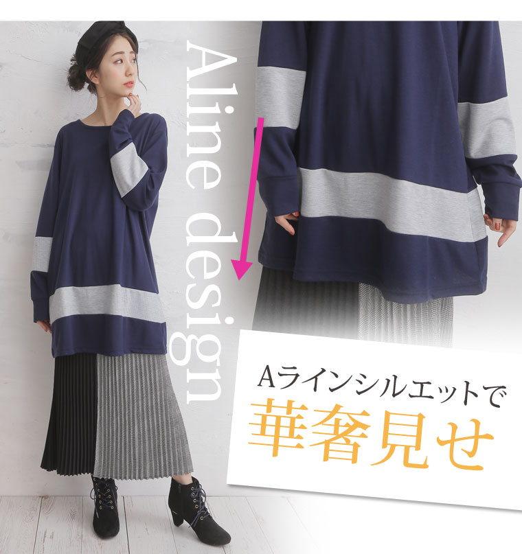 配色切替でメリハリシルエット!!Aラインデザインチュニック