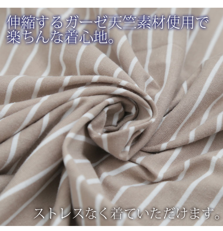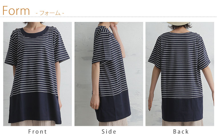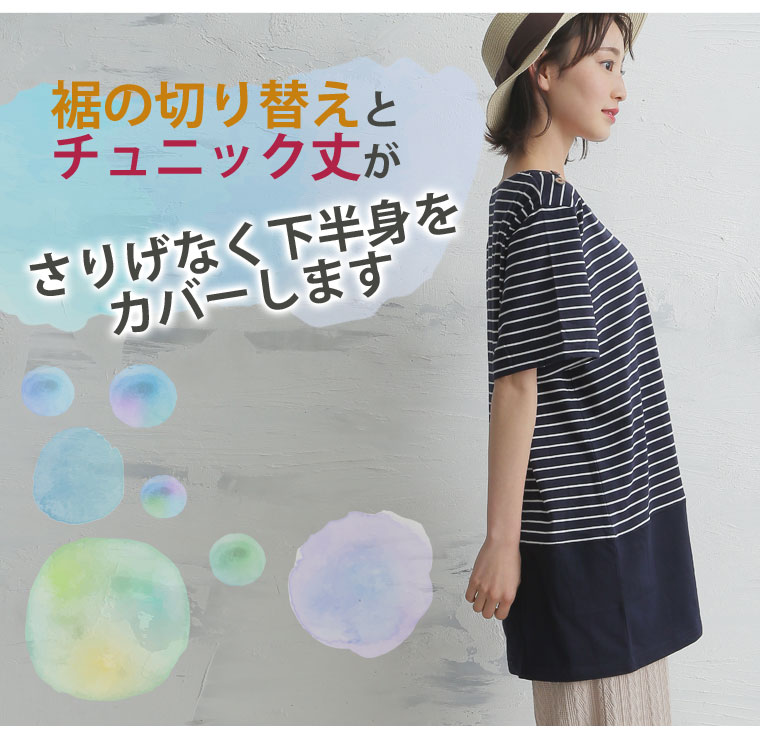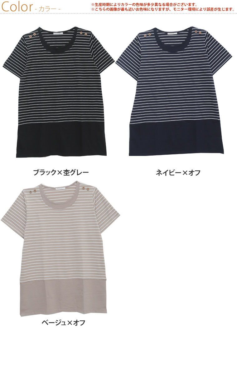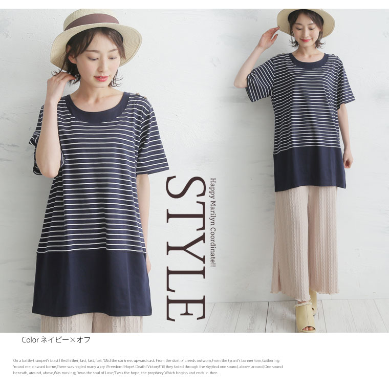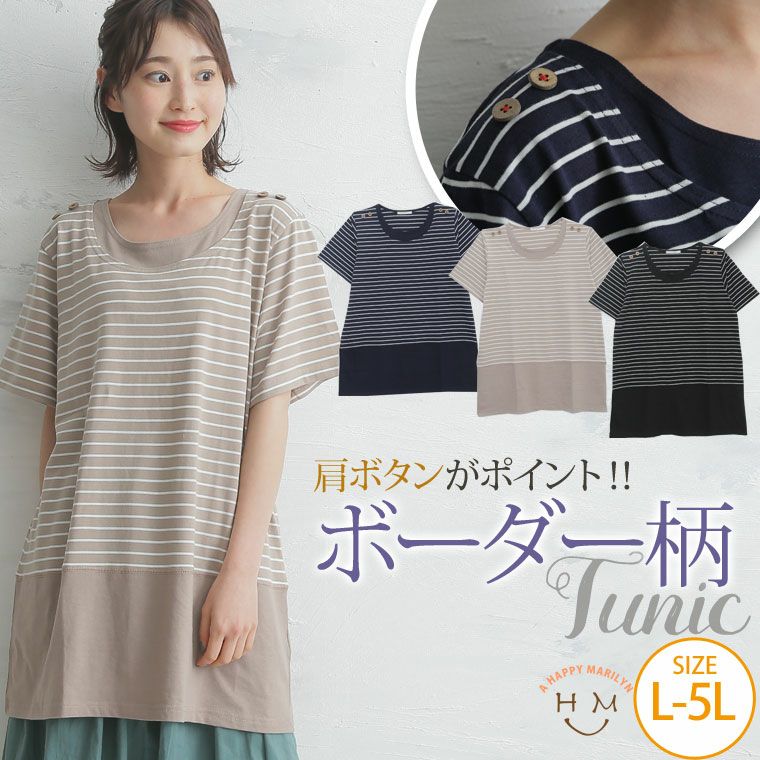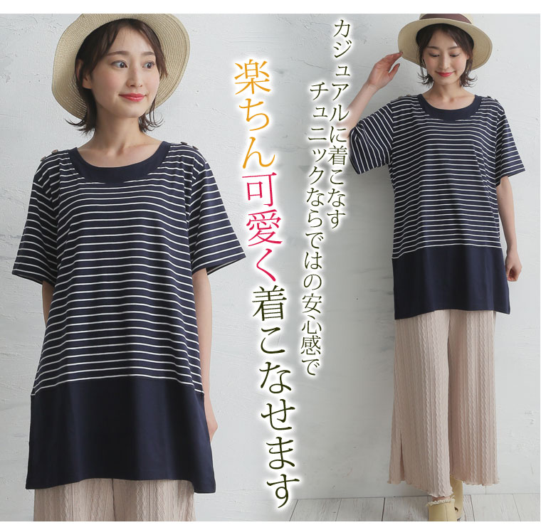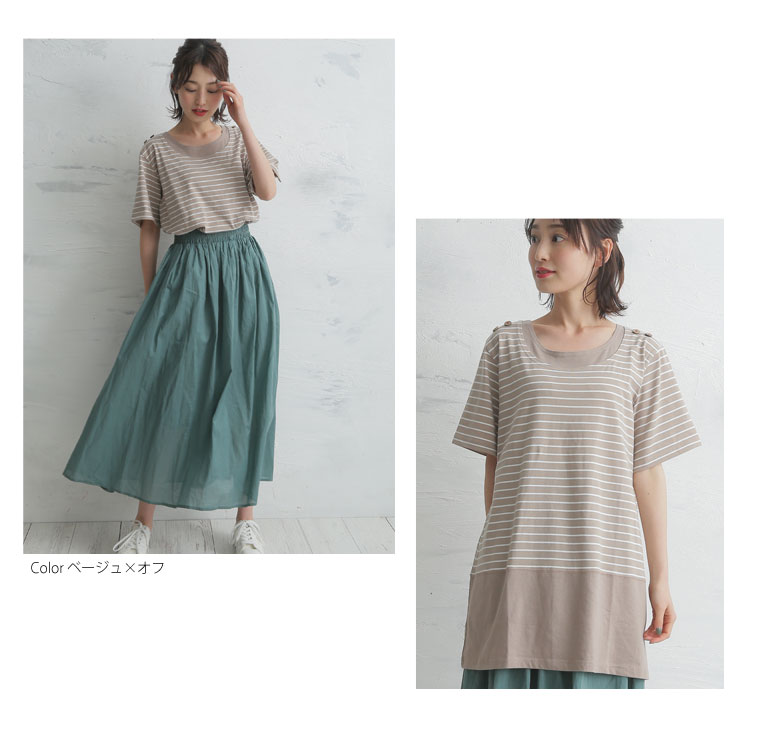 肩ボタンボーダー柄切替チュニック
