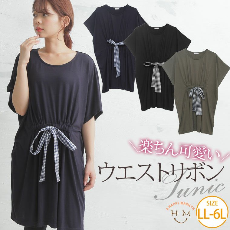 3. 大きいサイズ ウエスト ギンガム柄 リボン チュニック | 大きいサイズの通販ならハッピーマリリン