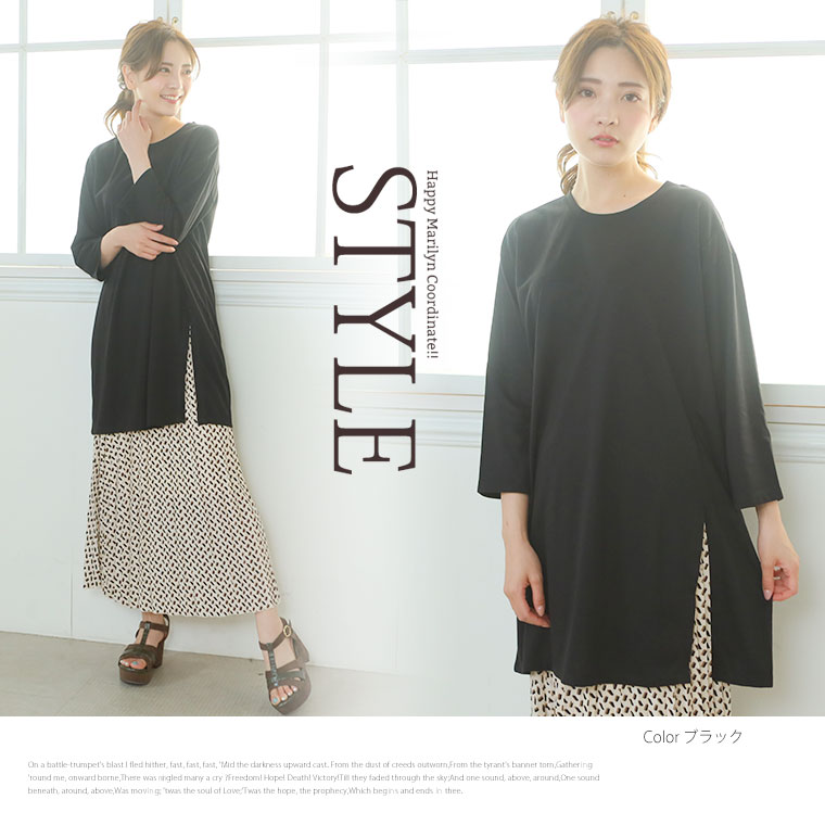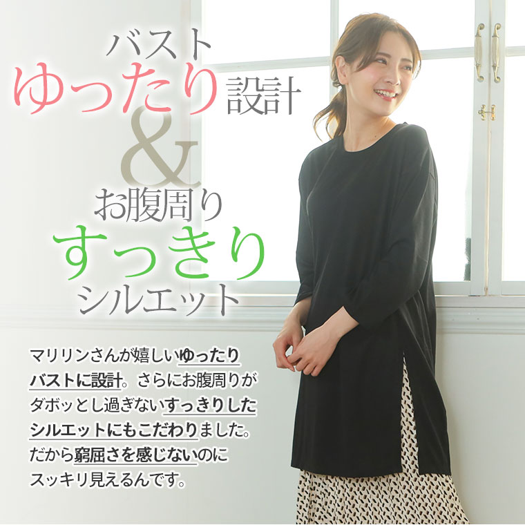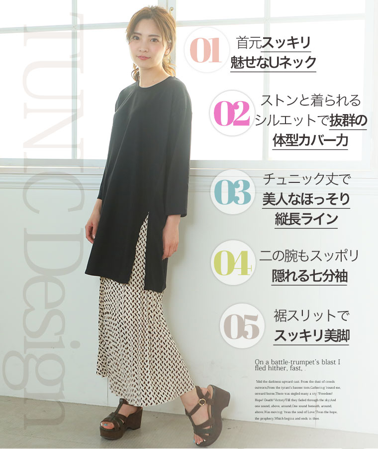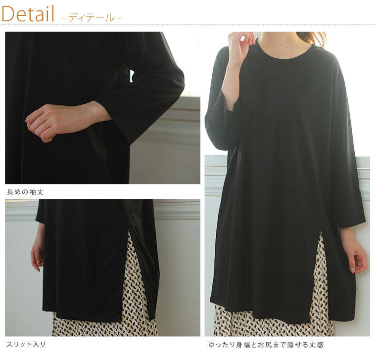 長めの丈でお尻を、七分袖で二の腕をしっかりカバー