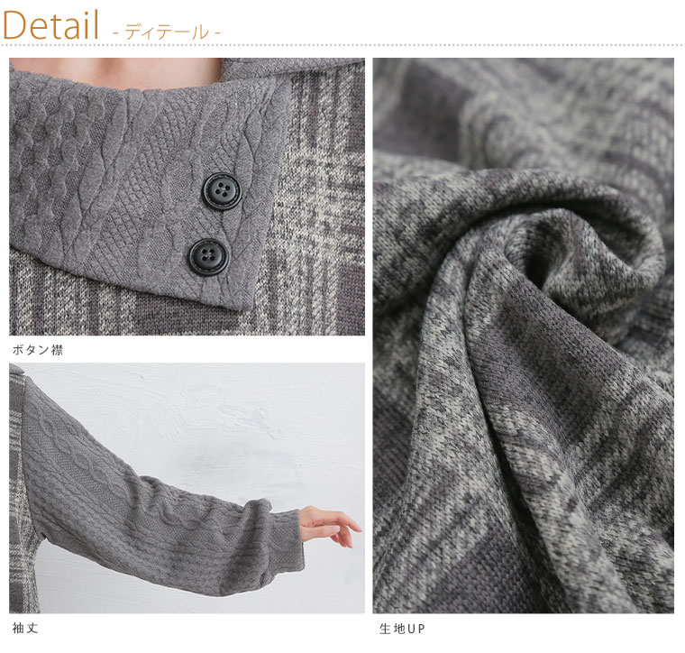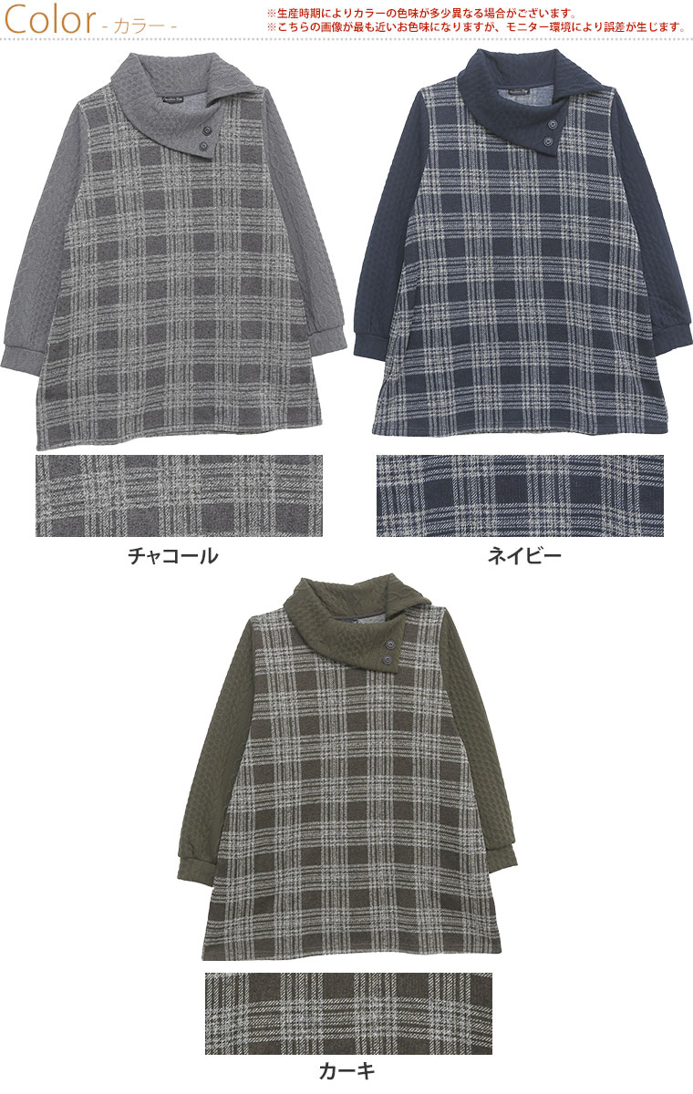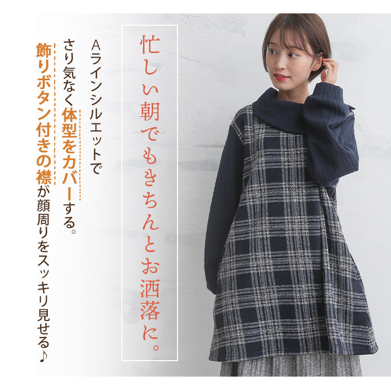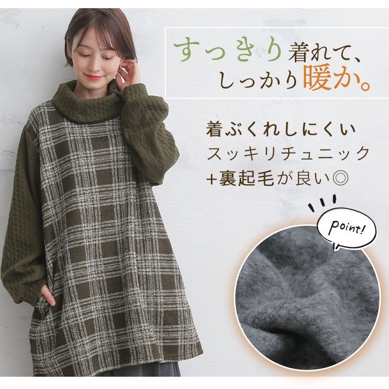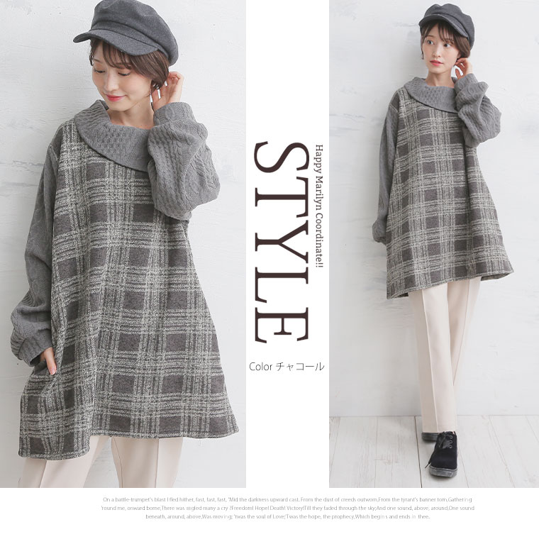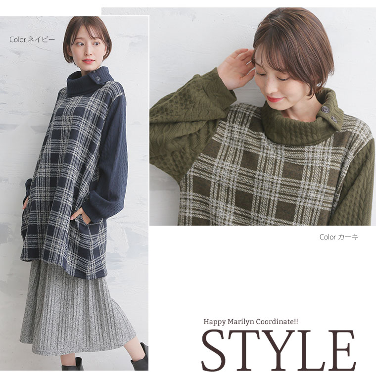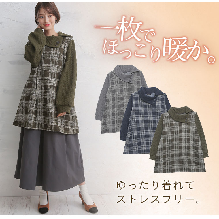 チェック柄が目を惹く ケーブルキルト切替がお洒落なチュニック