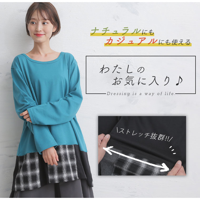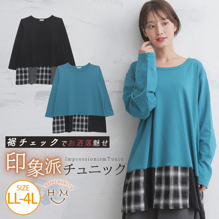 裾チェックが印象的なお洒落チュニック