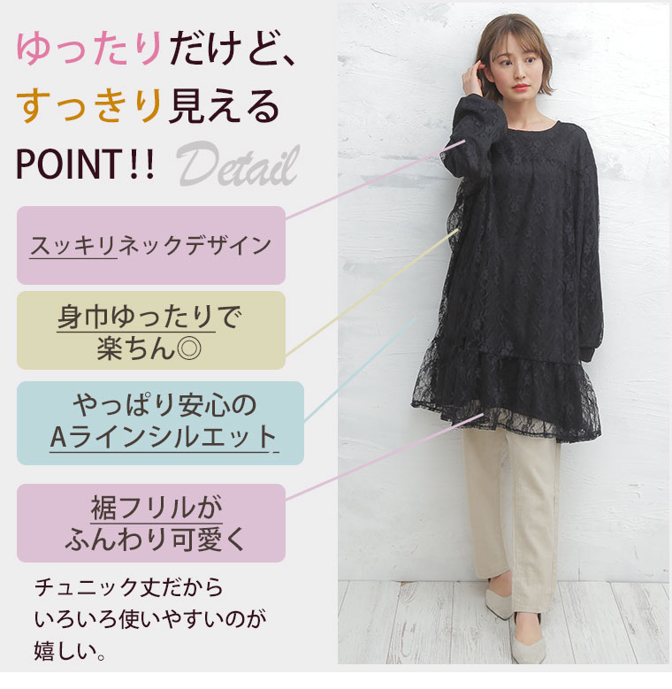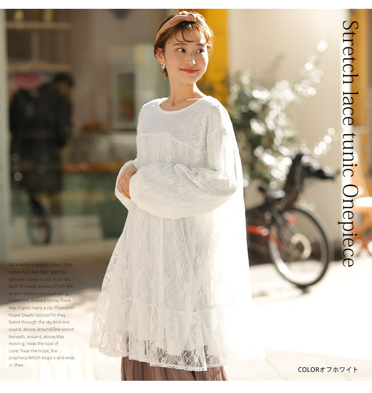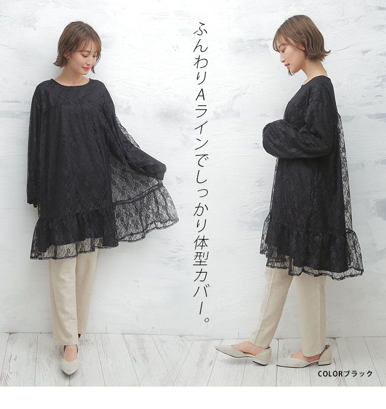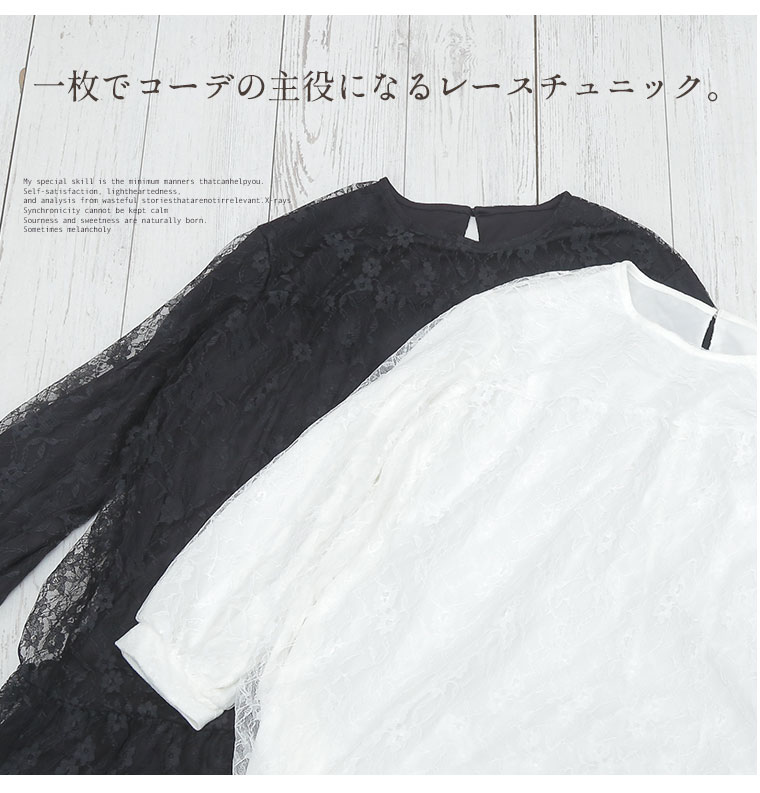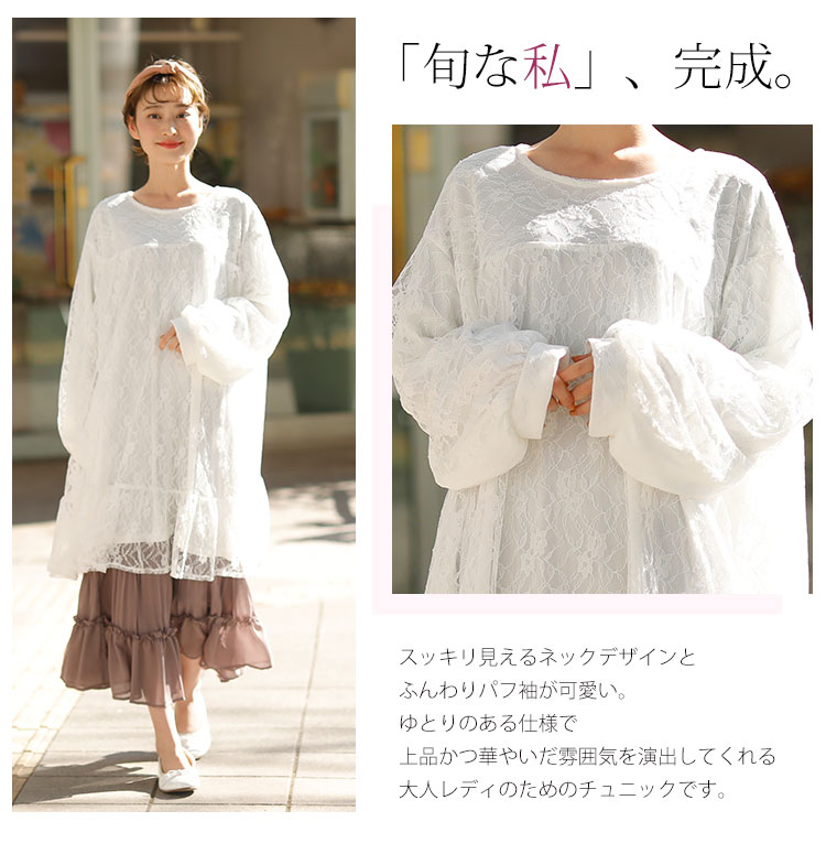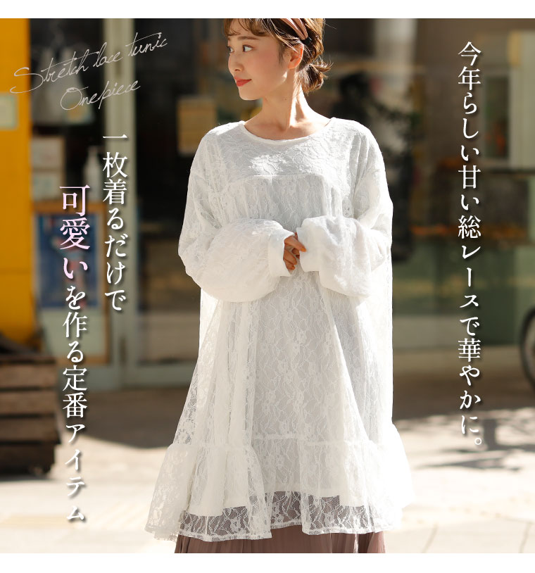 今年らしい甘い総レースで華やかに。1枚着るだけで可愛いを作る定番アイテム。