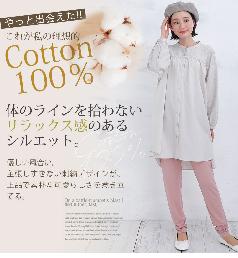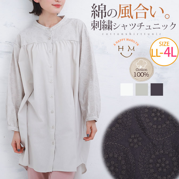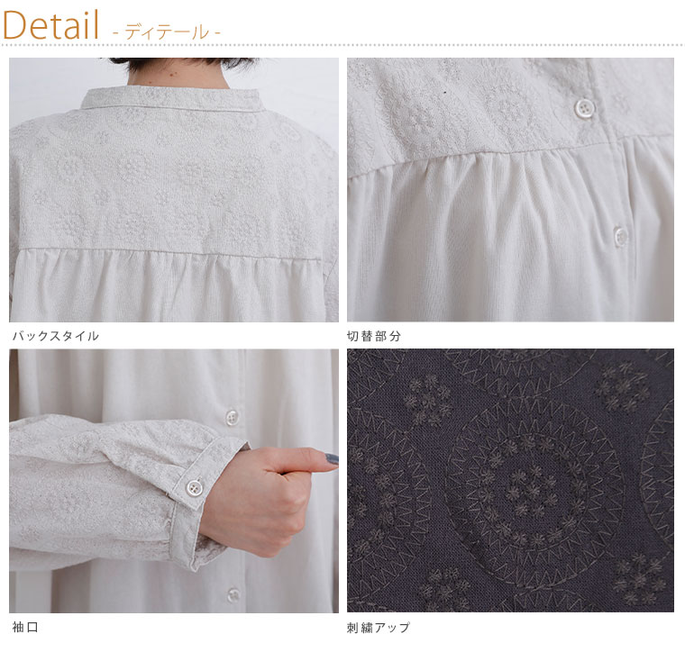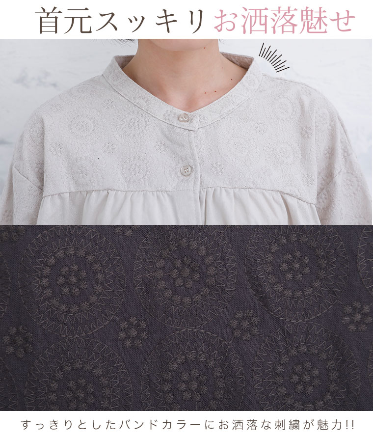 リラックス感のあるシルエット 刺繍シャツチュニック