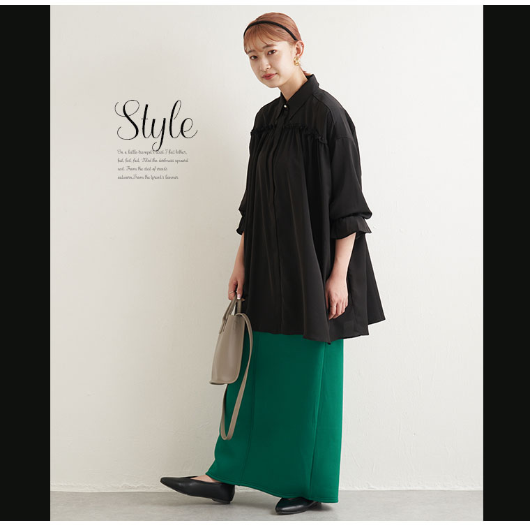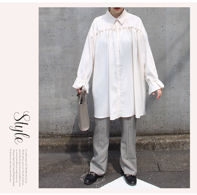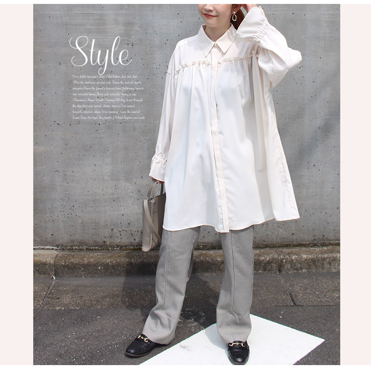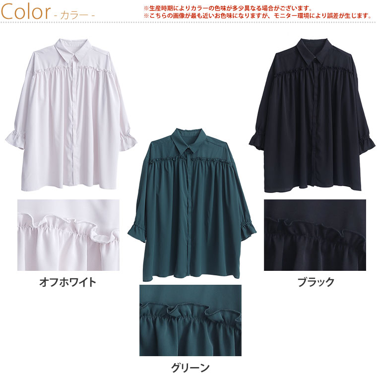 身長:168cm 購入サイズ:5L カラー:オフホワイト カラーも着用感も良く見映えも写真通りで可愛いのですが、届いたとき既に襟に深いシワがついており、その後洗濯・アイロンがけをしても直らなかったので、-1 としました。