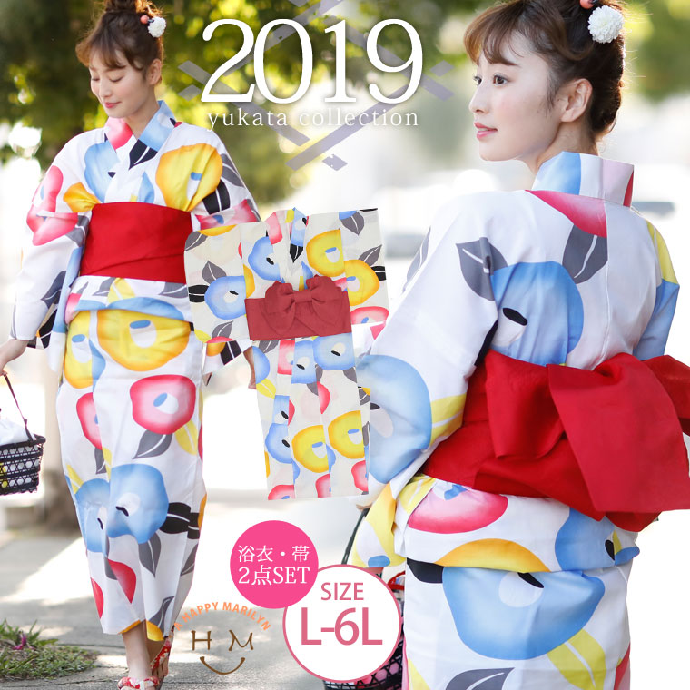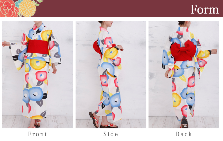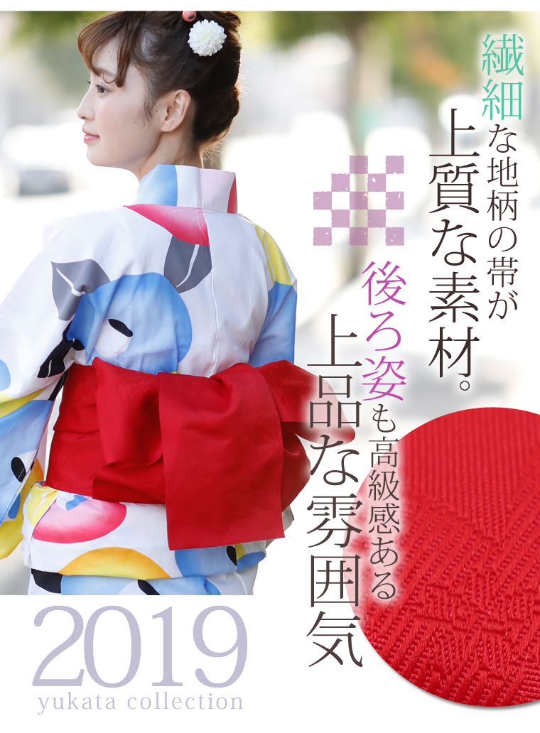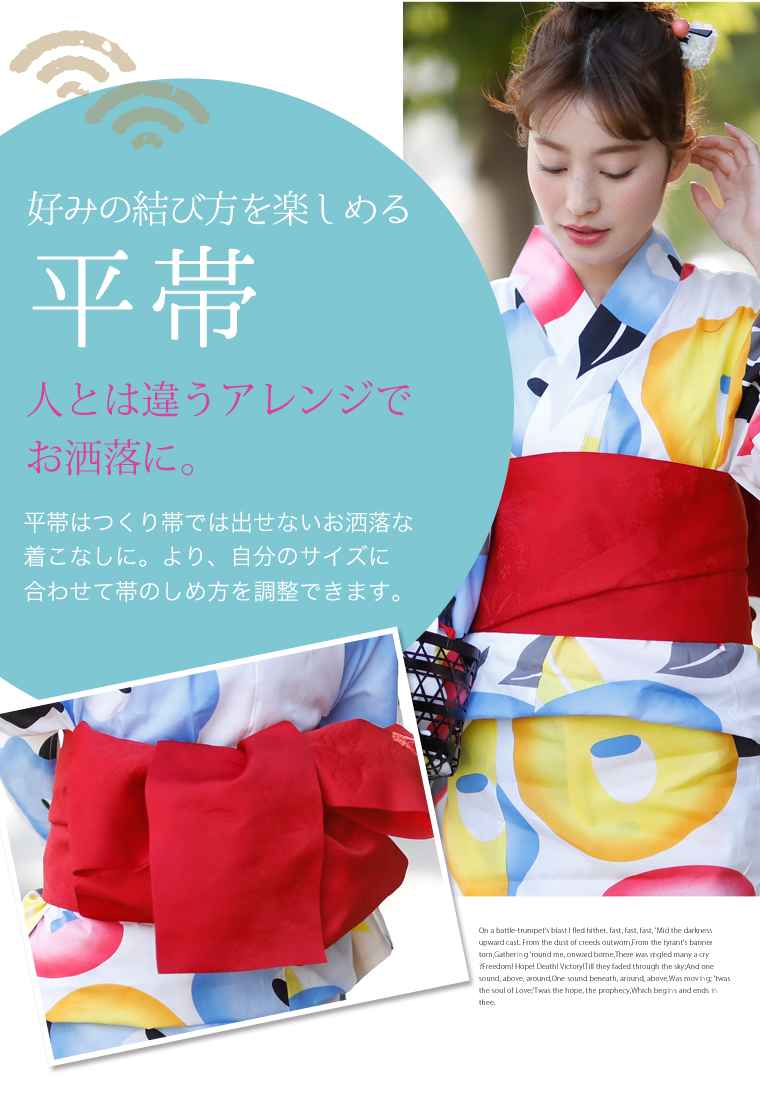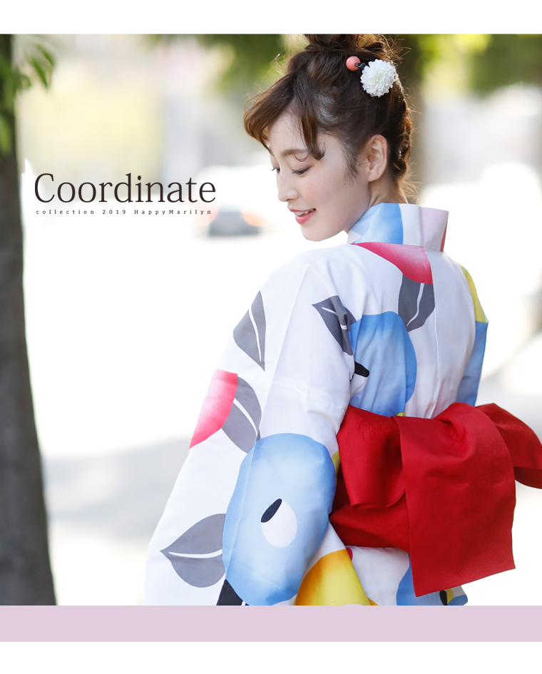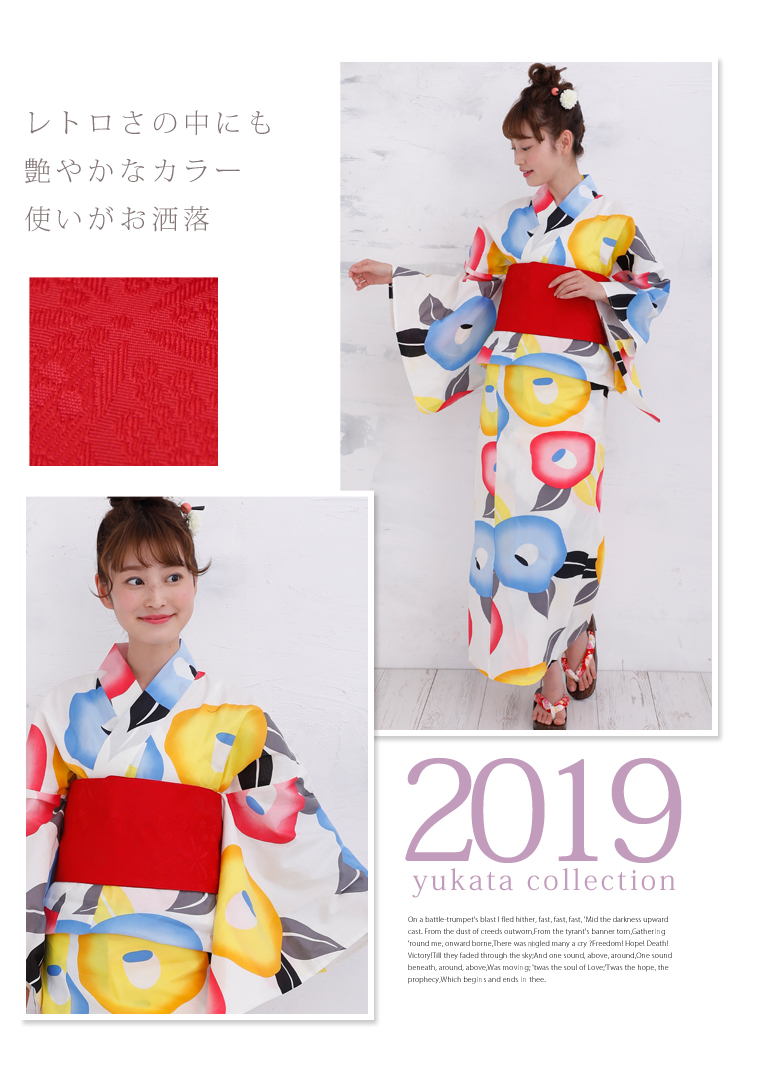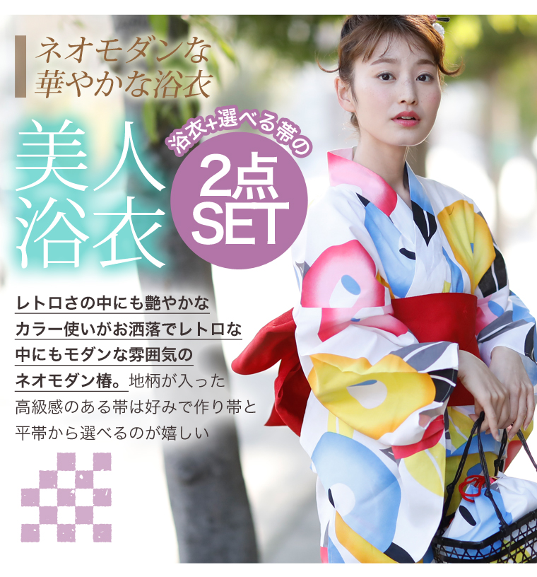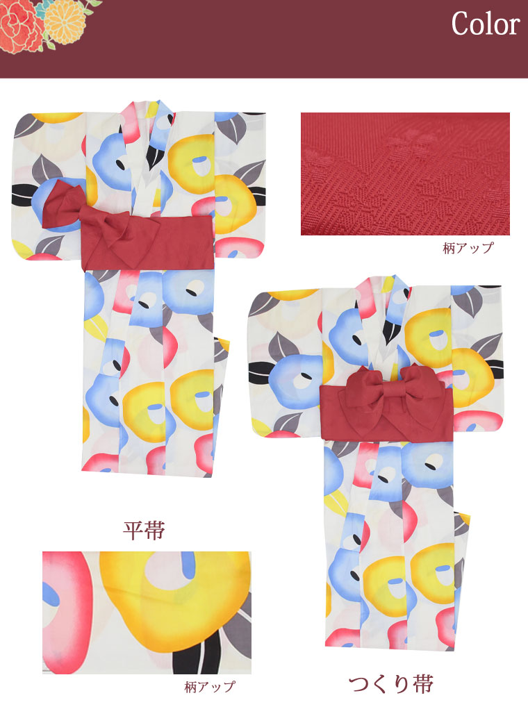 平帯・つくり帯の2タイプから選べる!!ネオモダン椿浴衣セット