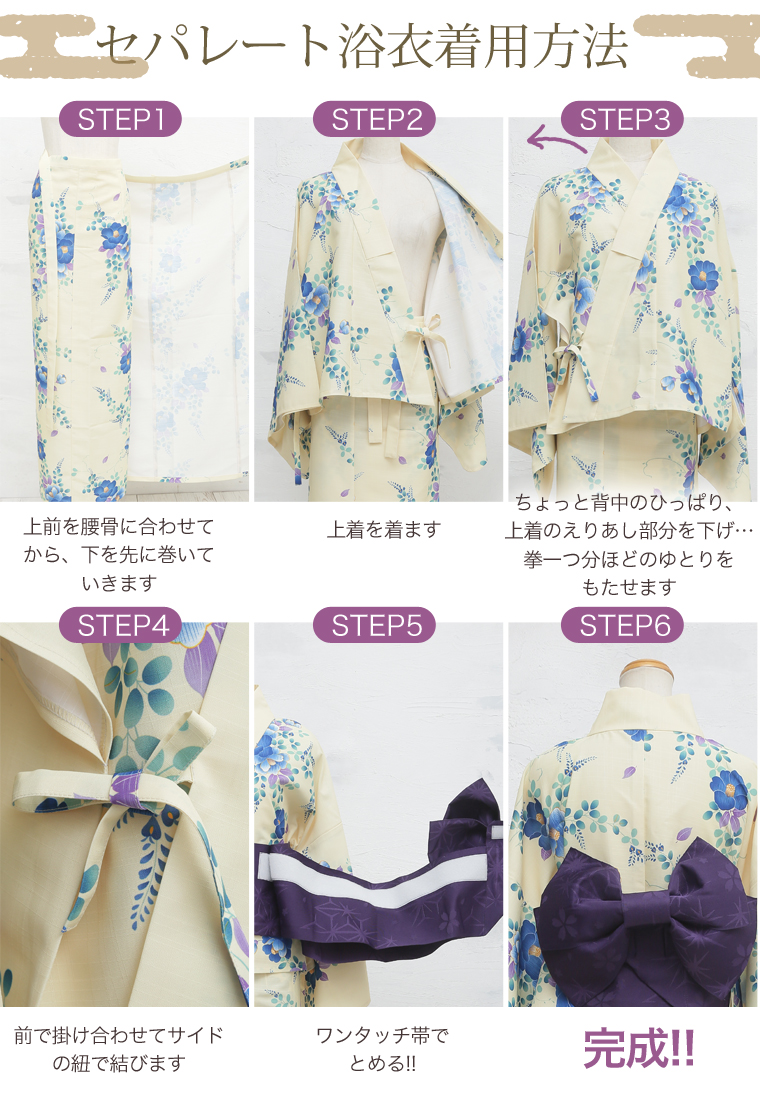 セパレートデザインで着崩れも安心♪簡単帯のネオモダン浴衣セット