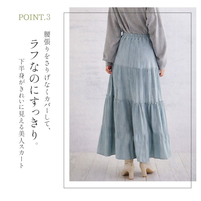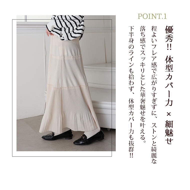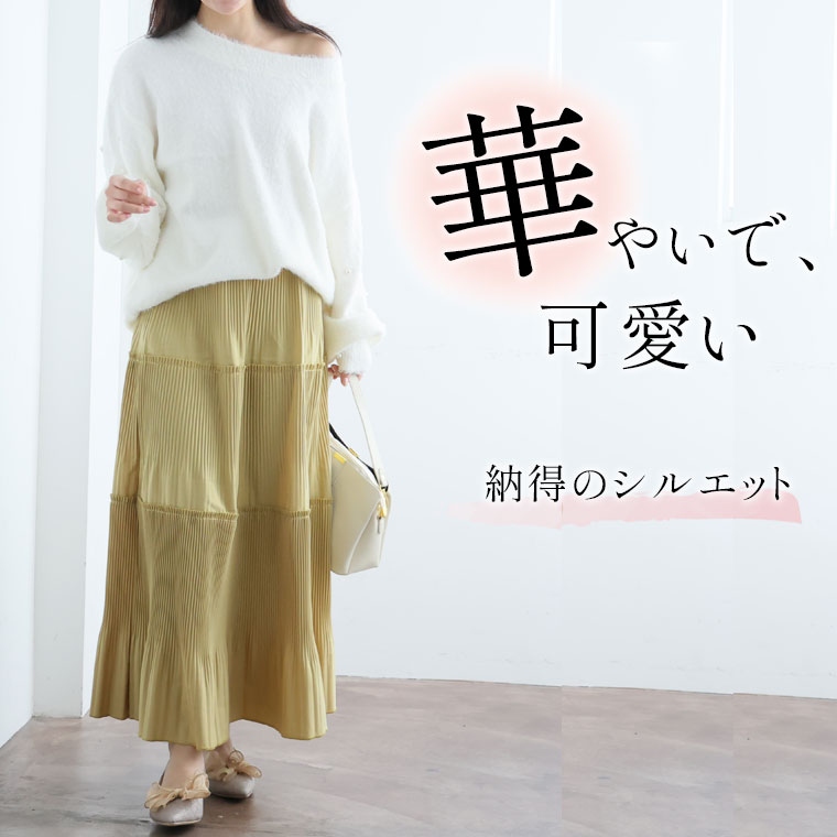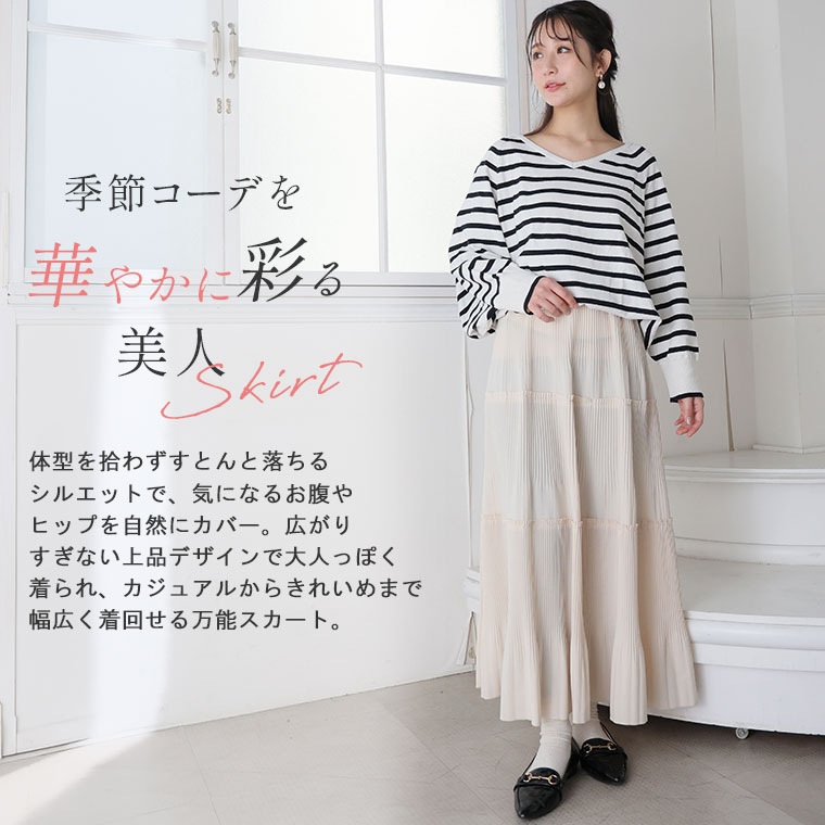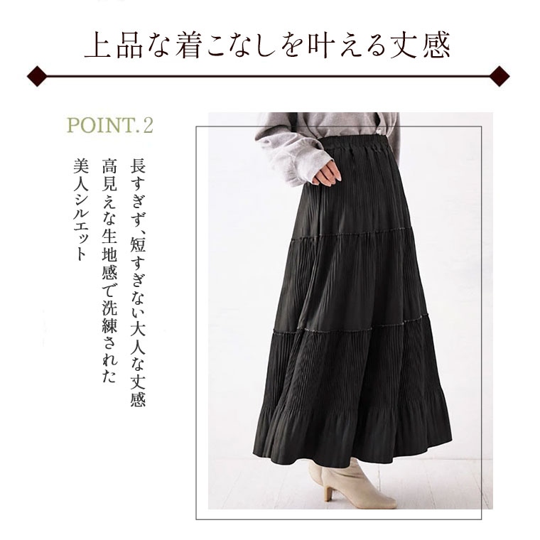 スカート好きさんにこそ着てほしい、プリーツティアードロングフレアスカート。