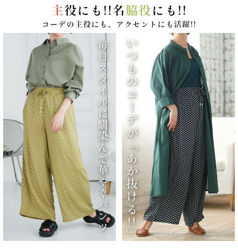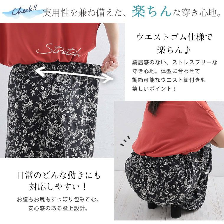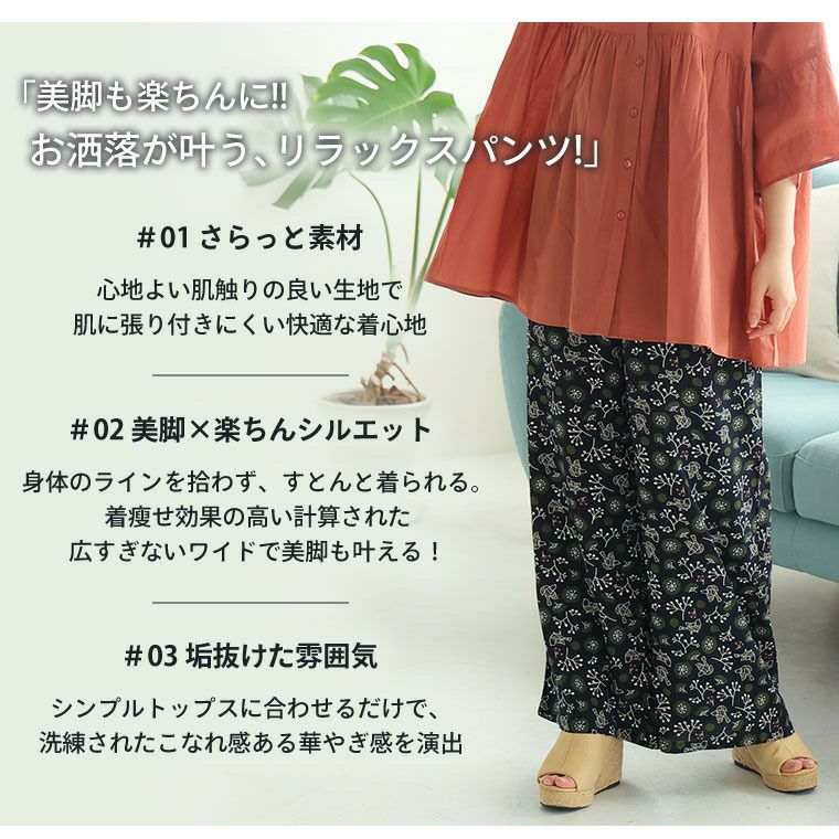 他の画像を見る ボトムス ストレート ワイドパンツ 3L 4L 5L 6L 夏 夏物 夏服 夏用 ぽっちゃり ゆったり プラスサイズ スラっと楽ちん ひんやり リラックス 華やぎプリント 細魅せ イージーパンツ【ウェストゴム】 | 大きいサイズの通販ならハッピーマリリン SALE 定価 ¥ 2,790 のところ 価格 ¥ 2,230 税込 4.09 お気に入りに登録する