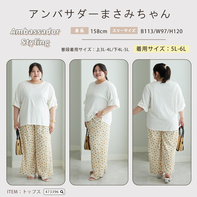 他の画像を見る ボトムス LL 3L 4L 5L 6L 夏 夏物 夏服 夏用 ぽっちゃり ゆったり プラスサイズ 太もも お尻 腰周り かわいい さらっと快適 パウダータッチの裏地付きで透けにくい セミワイドパンツ【ウェストゴム】【ストレッチ】 | 大きいサイズの通販ならハッピーマリリン SALE 定価 ¥ 2,990 のところ 価格 ¥ 2,390 税込 3.80 お気に入りに登録する