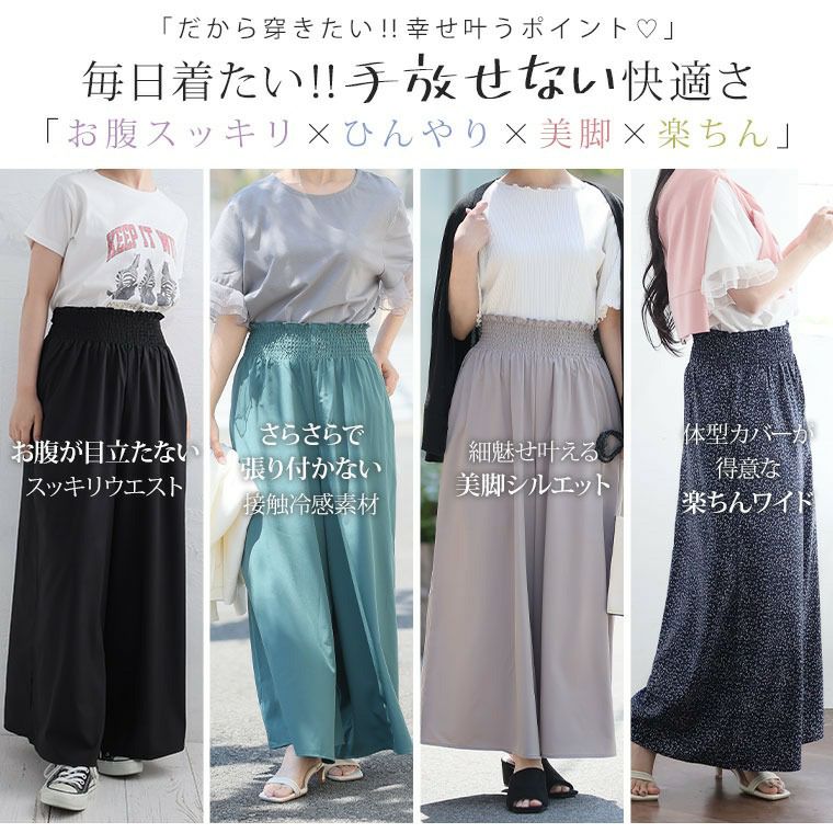 他の画像を見る ボトムス LL 3L 4L 5L 6L 夏 夏物 夏服 夏用 ぽっちゃり ゆったり イージーケア シワになりにくい 接触冷感 綺麗が続く! お腹すっきり魅せ! 楽して 美脚 接触冷感 シャーリング ワイドパンツ お腹 【ウェストゴム】【ストレッチ】 | 大きいサイズの通販ならハッピーマリリン SALE 定価 ¥ 2,990 のところ 価格 ¥ 2,390 税込 3.33 お気に入りに登録する