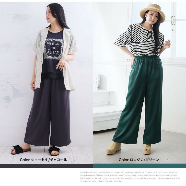 他の画像を見る ボトムス LL 3L 4L 5L 6L 夏 夏物 夏服 夏用 ぽっちゃり ゆったり プラスサイズ お尻 腰周り 太もも おしゃれ 選べる2丈 なめらか心地良い、コーデの救世主 サテンライク ワイドパンツ【ウェストゴム】【ストレッチ】 | 大きいサイズの通販ならハッピーマリリン SALE 小柄さん丈有 定価 ¥ 2,990 のところ 価格 ¥ 2,390 税込 4.20 お気に入りに登録する
