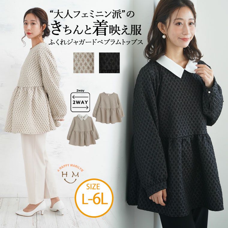 他の画像を見る トップス チュニック LL 3L 4L 5L 6L 秋 秋物 秋服 冬 冬物 冬服 ぽっちゃり ゆったり プラスサイズ カジュアル ナチュラル 春 2way 着回し上手な ふくれジャガード ペプラム トップス | 大きいサイズの通販ならハッピーマリリン SALE 定価 ¥ 5,490 のところ 価格 ¥ 3,840 税込 2.50 お気に入りに登録する
