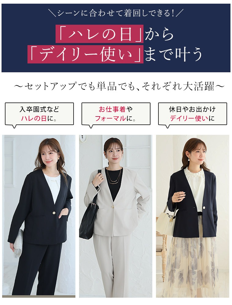 セレモニーもお仕事も普段着にも使えるヘビロテジャケット。セットアップ可能