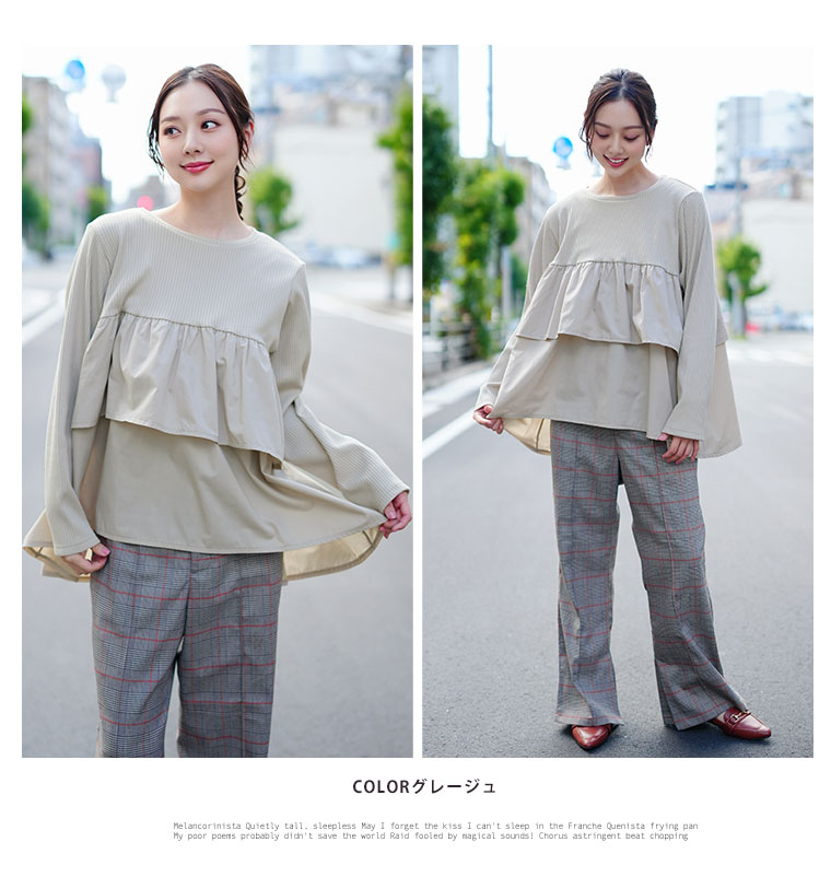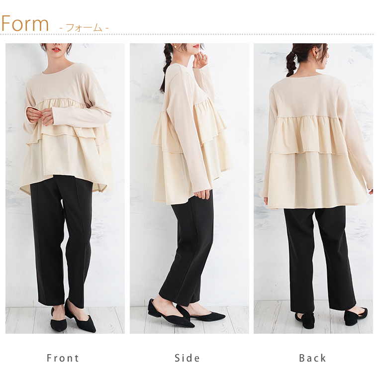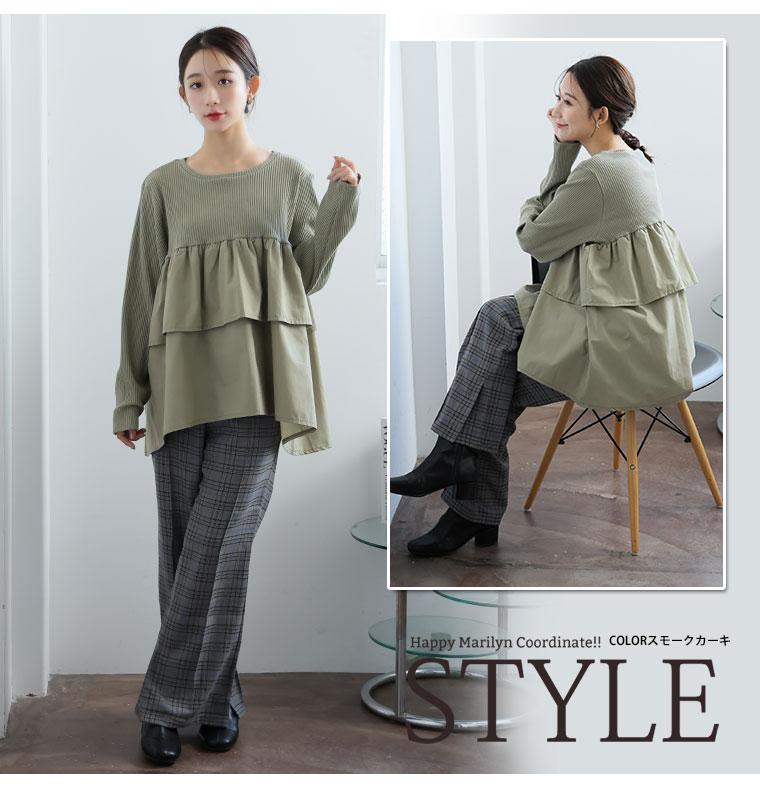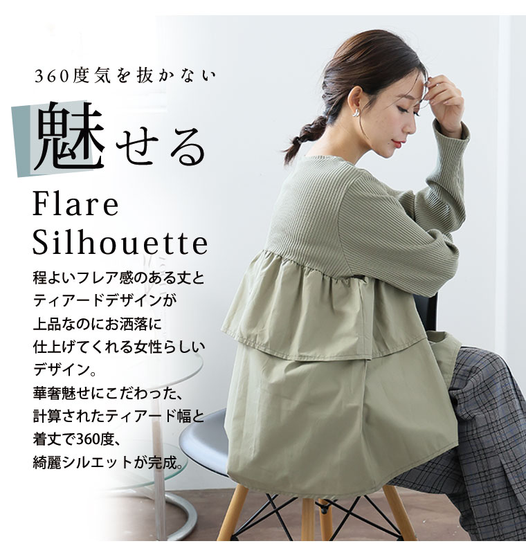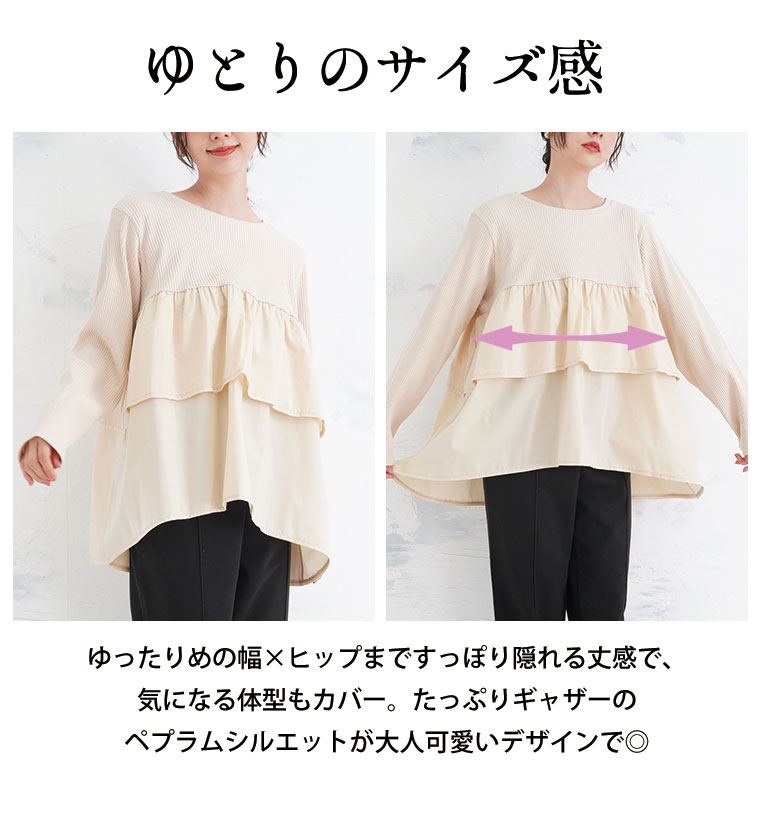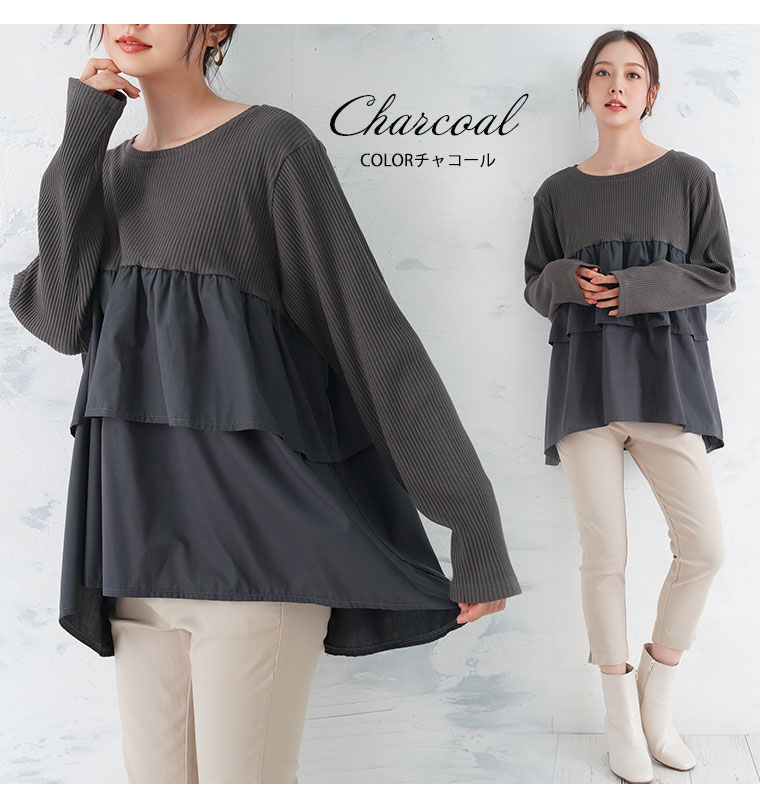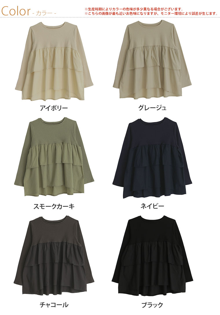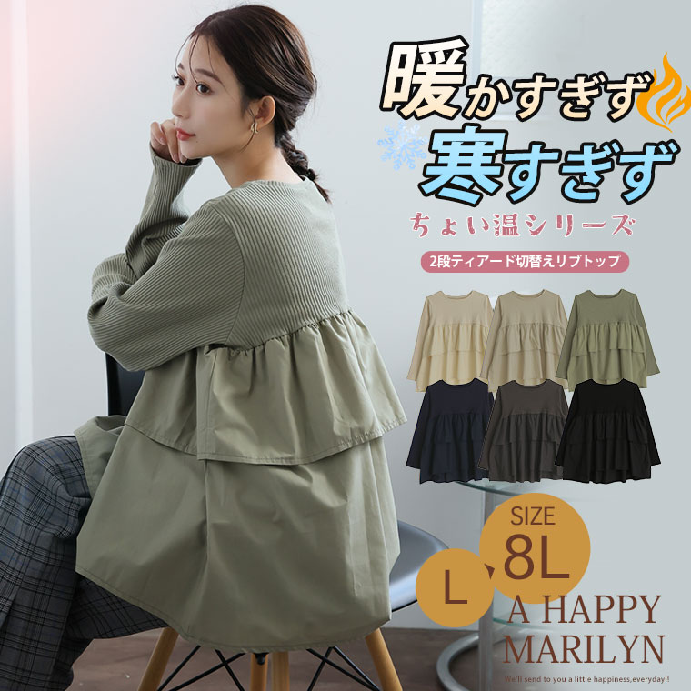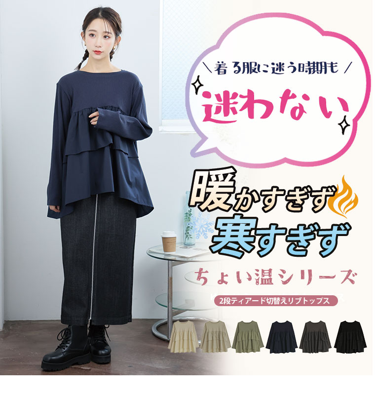ほどよい暖かさが丁度良い【ちょい温シリーズ】 2段ティアード切替え リブ トップス