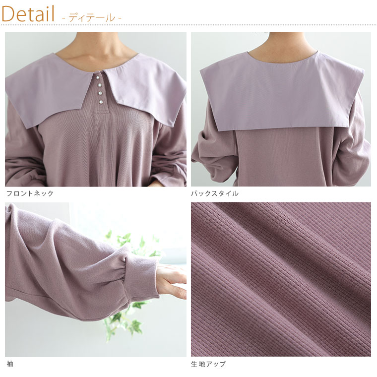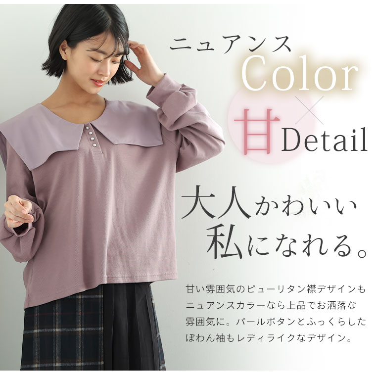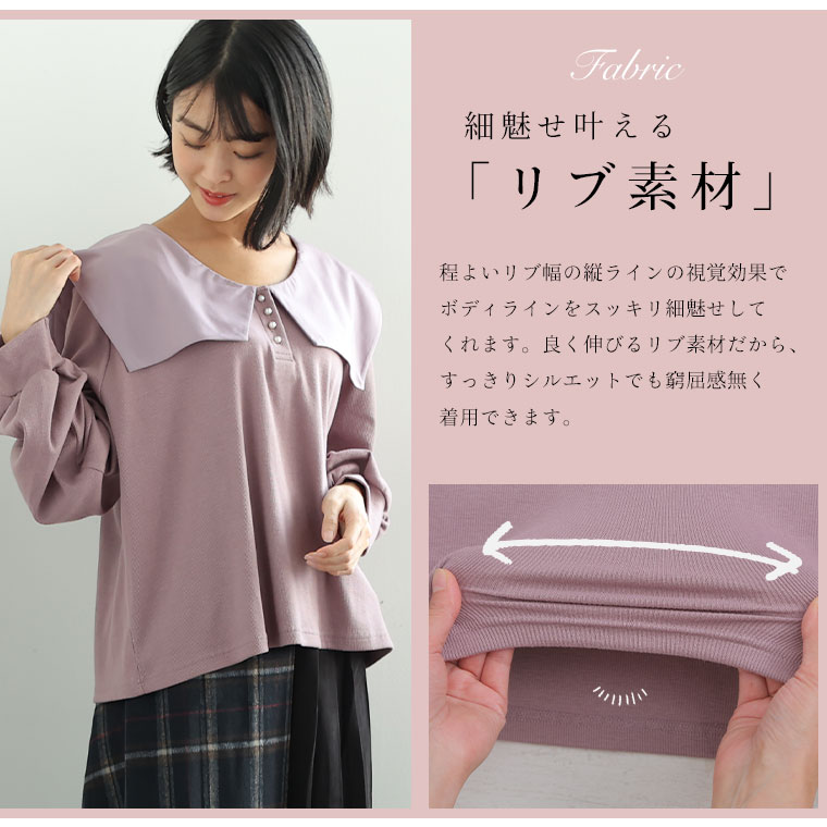 甘襟×パールで大人可愛い リブトップス