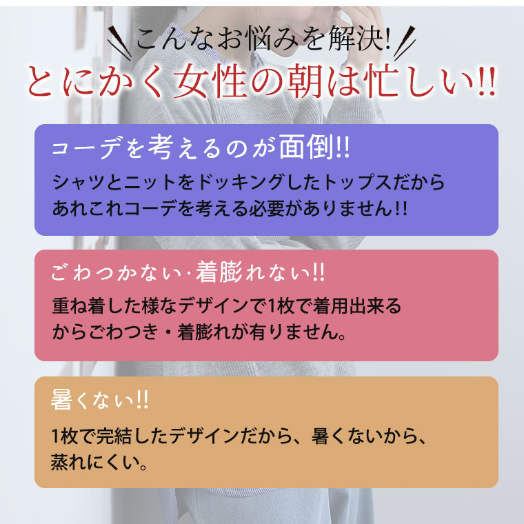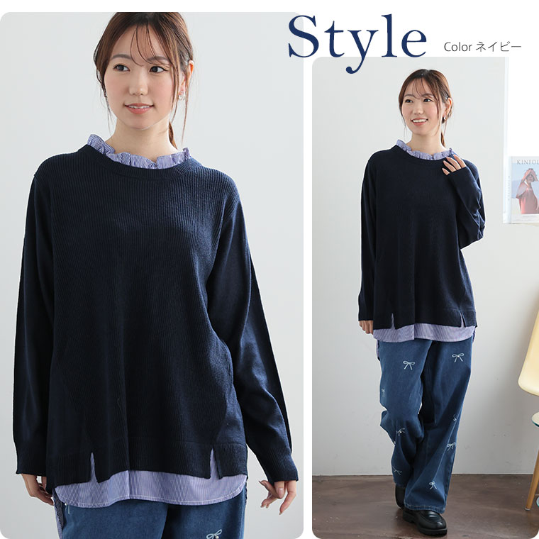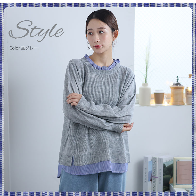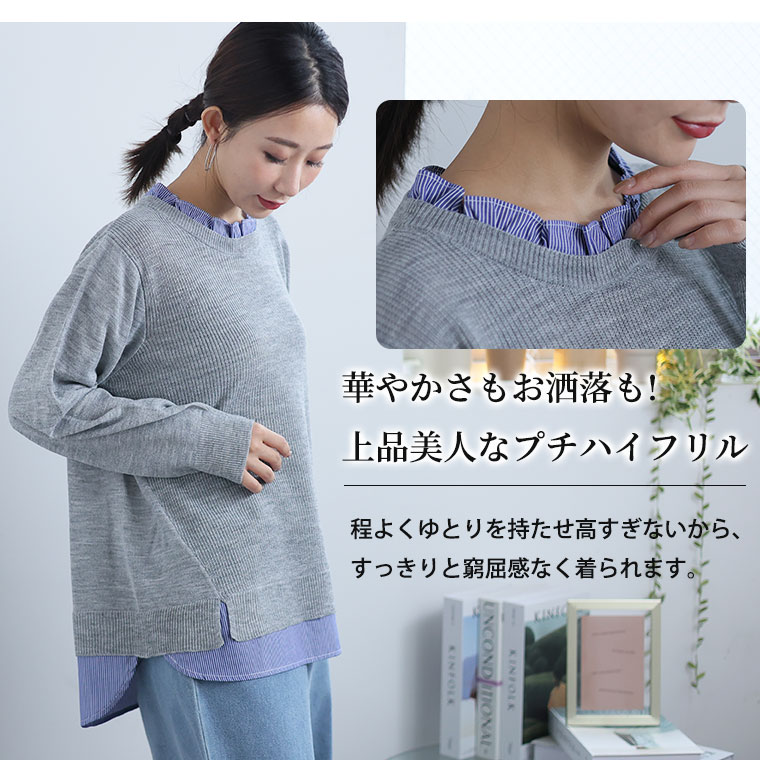3秒でコーデ完成!フリル襟が上品なドッキングトップス