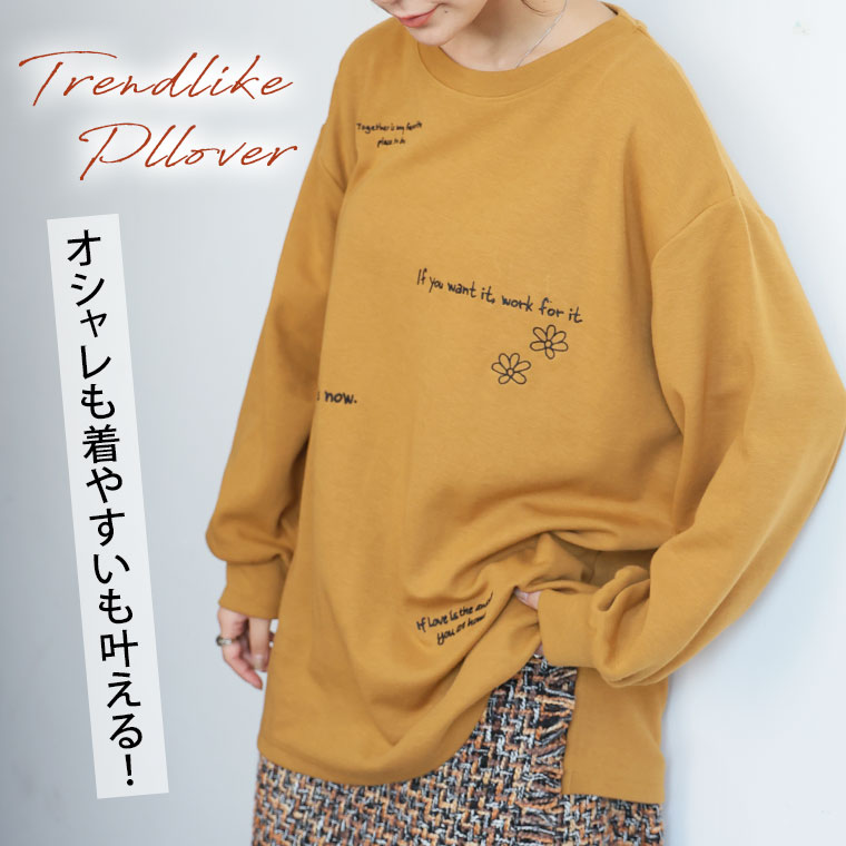 トレーナー LL 3L 4L 5L 長袖 秋 秋物 秋服 冬 冬物 冬服 ぽっちゃり ゆったり プラスサイズ かわいい おしゃれ カジュアル ナチュラル お尻 英字刺繍 プルオーバー スウェット 裏毛 ロゴ