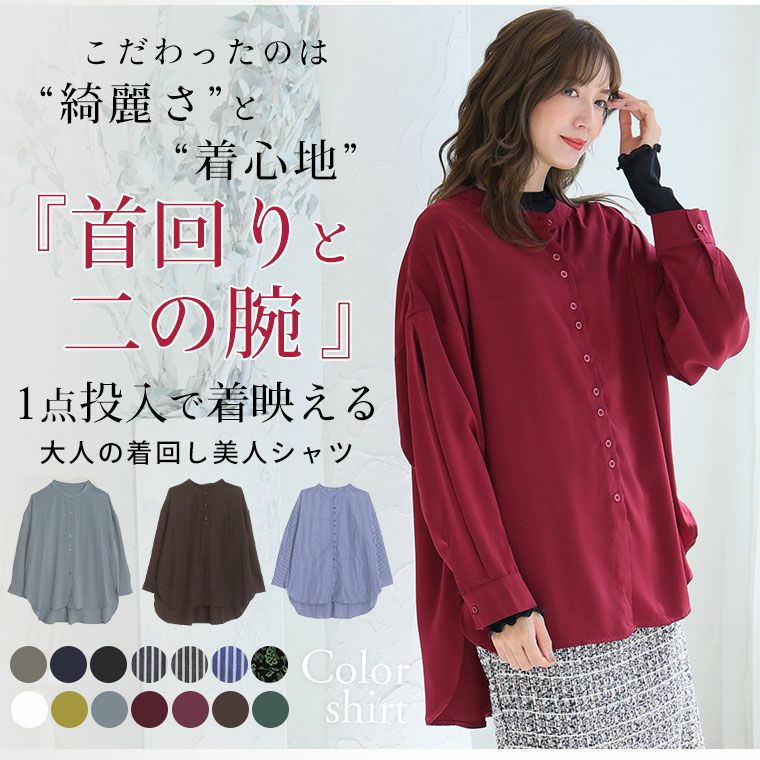 他の画像を見る オリジナル ブラウス トップス LL 3L 4L 5L 6L 7L 8L 秋 冬 ぽっちゃり ゆったり プラスサイズ 春 新色追加!! ボタンがお洒落!! 首元苦しくない 大人のこなれ 着回し バンドカラーシャツ | 大きいサイズの通販ならハッピーマリリン SALE lafarfa掲載 定価 ¥ 3,490 のところ 価格 ¥ 2,090 税込 4.00 お気に入りに登録する